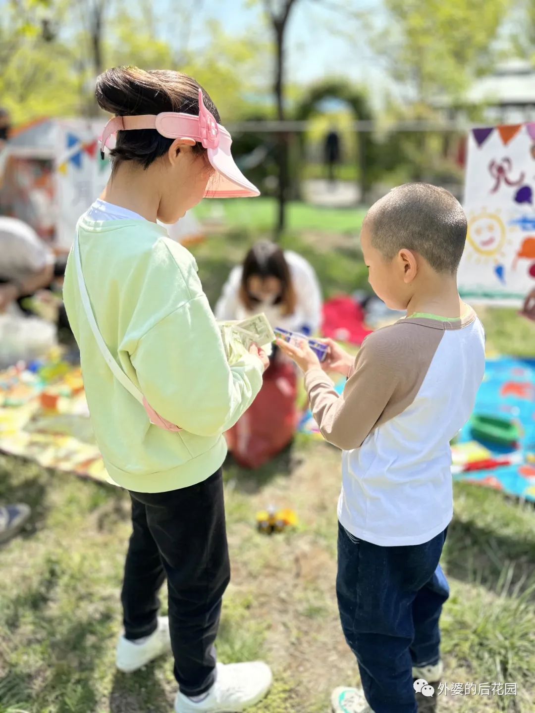 随后大家开始挂上招牌开始营业,每个小朋友都积极的推销自己的产品,认真的向顾客介绍。一旁的父母都感到惊讶,原来都是“社牛”。