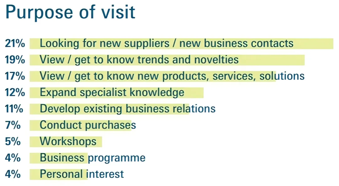从观展目的来看,观众以商业拓展与行业深耕为核心诉求,21%的观众旨在寻找新供应商与商业合作伙伴,19%的观众希望了解行业最新趋势与创新成果,17%的观众专注于考察新产品、新服务与解决方案,三大商业导向需求合计占比过半。同时,还有12%的观众希望拓展专业知识,11%的观众用于维护现有业务关系,展会既为展商提供了挖掘潜在客户、拓展市场渠道的核心场景,也搭建了深化行业交流、巩固合作关系的优质平台,实现了“商机挖掘+长期合作”的双重价值赋能。