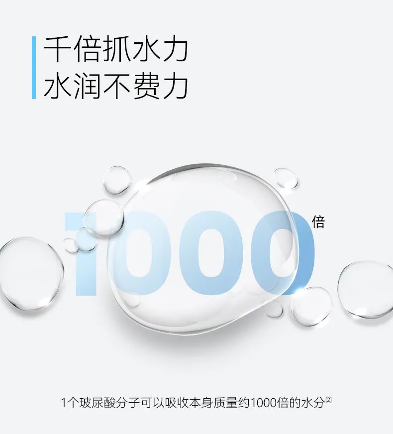 玻尿酸分子的链状结构呈现出一种螺旋状的形态,由于其独特的分子结构和特性,每一个玻尿酸分子都可以吸附其自身质量1000倍的水分,这就是玻尿酸“千倍抓水力”的秘密所在。
