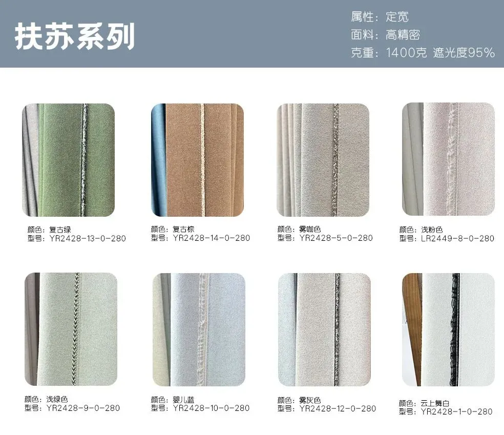 属性:定宽 面料:高精密 克重:1400克 遮光度95%