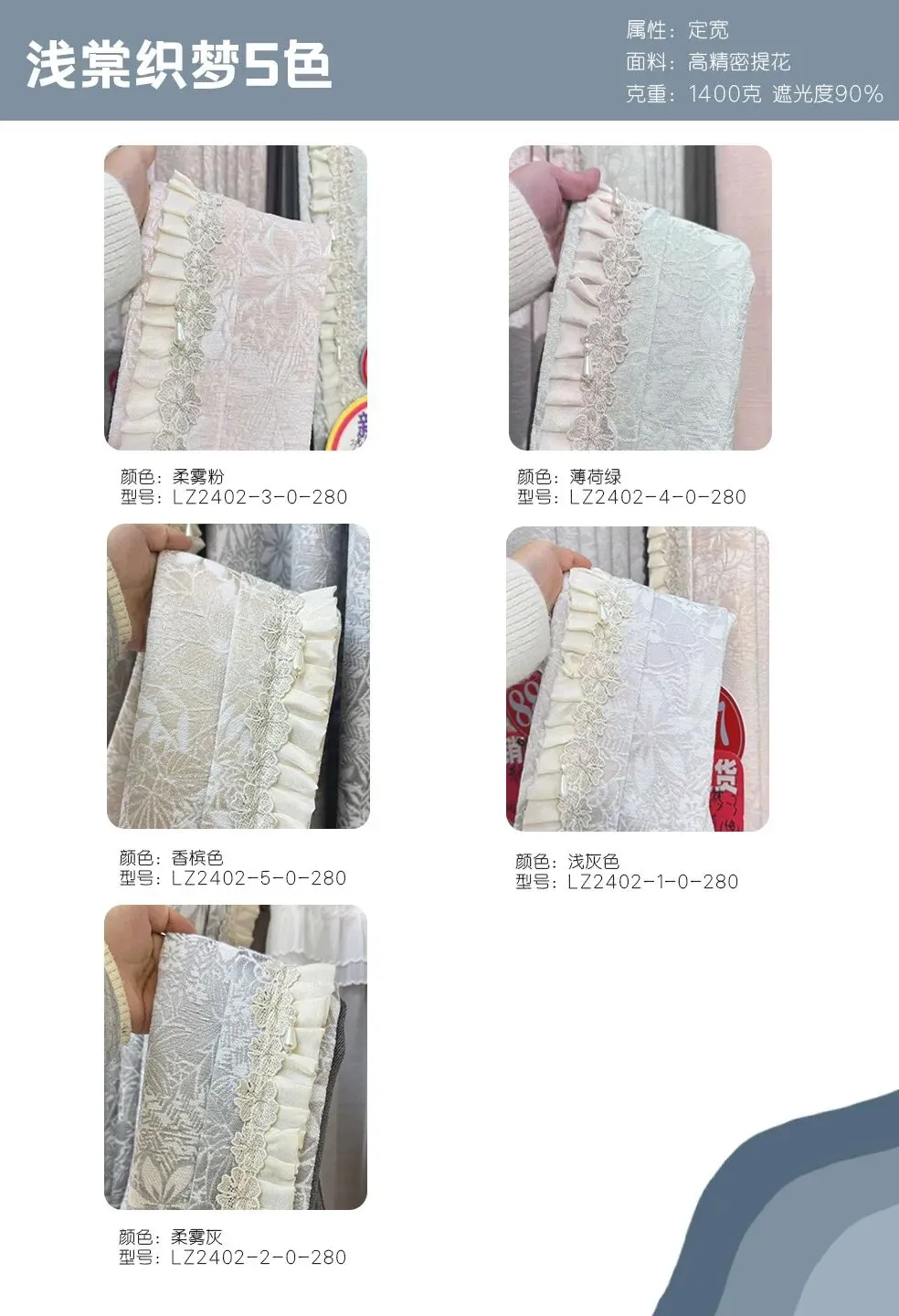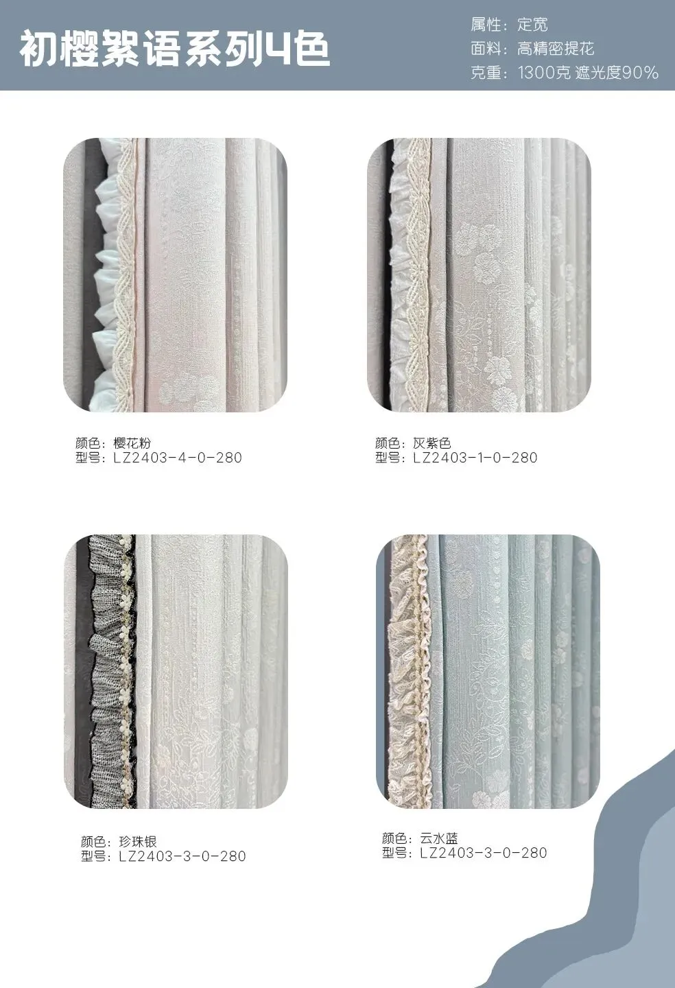 属性:定宽 面料: 高精密提花 克重:1300克 遮光度95%