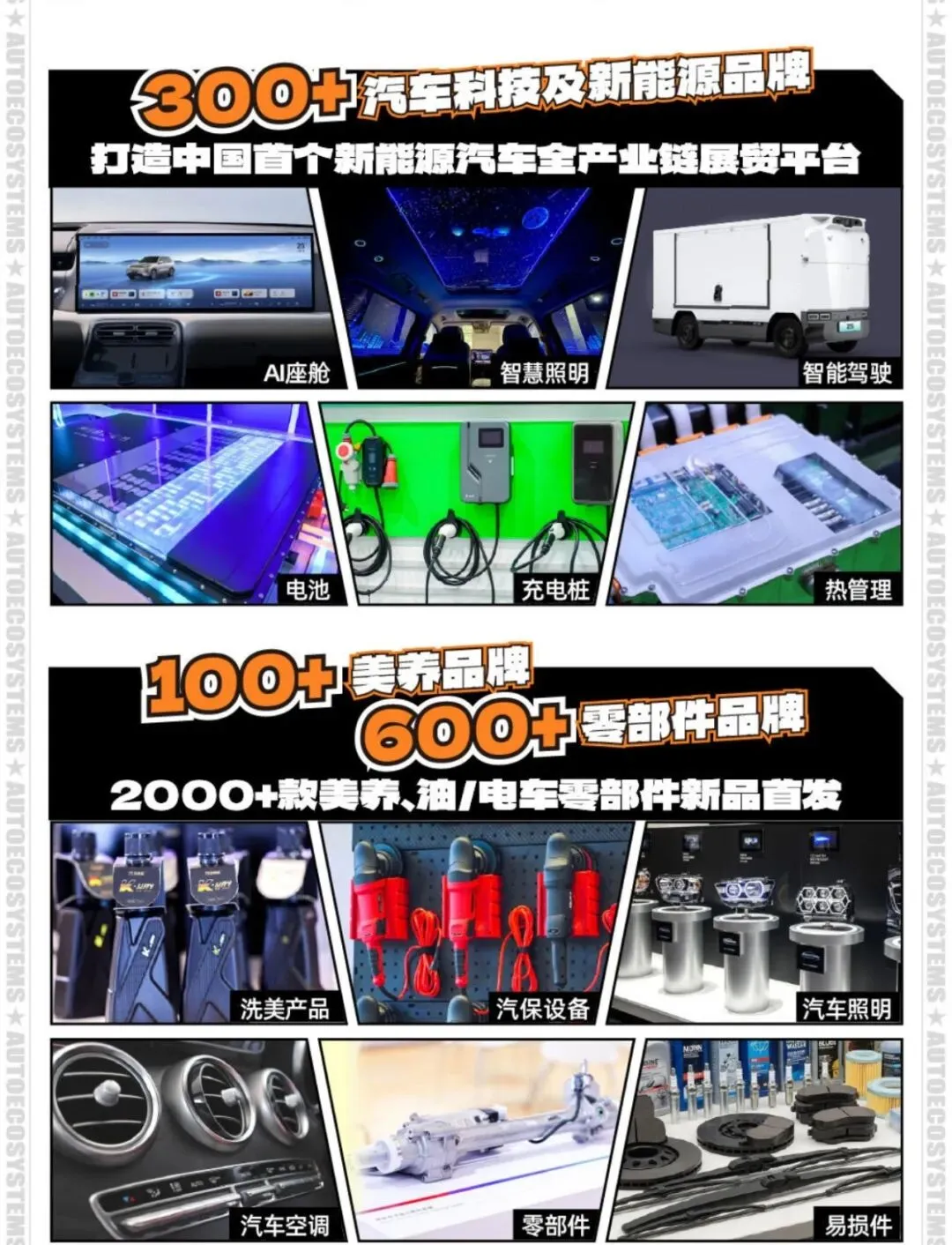 目前120+新能源及传统汽车品牌、5400+定制改装品牌、300+汽车科技企业、600+商用车配套品牌、700+汽车零部件品牌齐聚,1000+新车型、25000+爆品集结完毕,诚邀您赴会,来九州展找年度新品、拓人脉、看趋势、链工厂、抓商机,贸易全球!