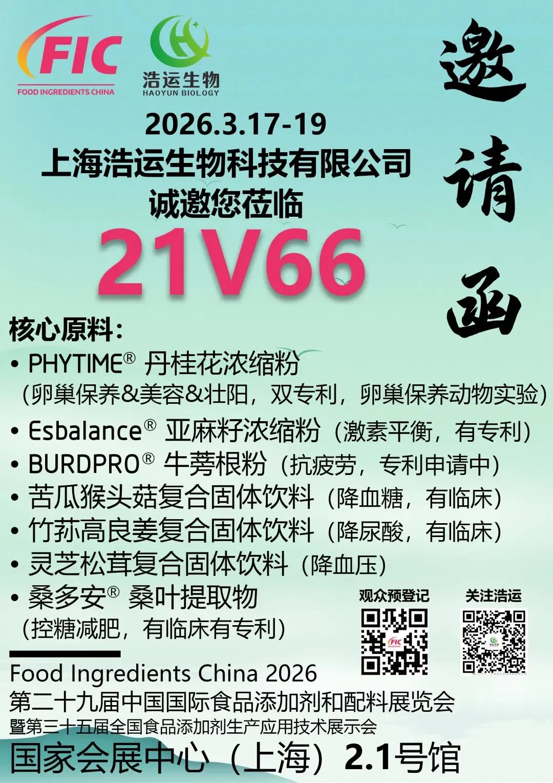 行业盛会,如约而至!3月17-19日,FIC 2026上海国际食品添加剂和配料展将在国家会展中心(上海)盛大启幕。