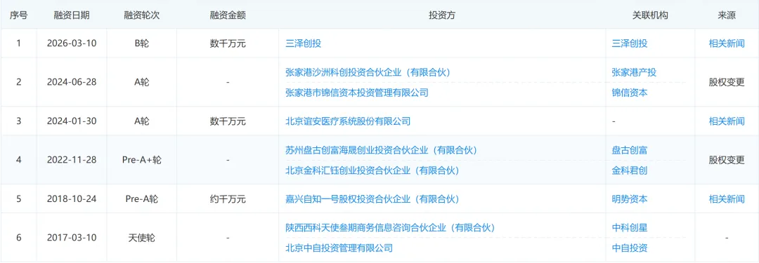 据神经未来查询企查查网站,该公司融资历程如下表: