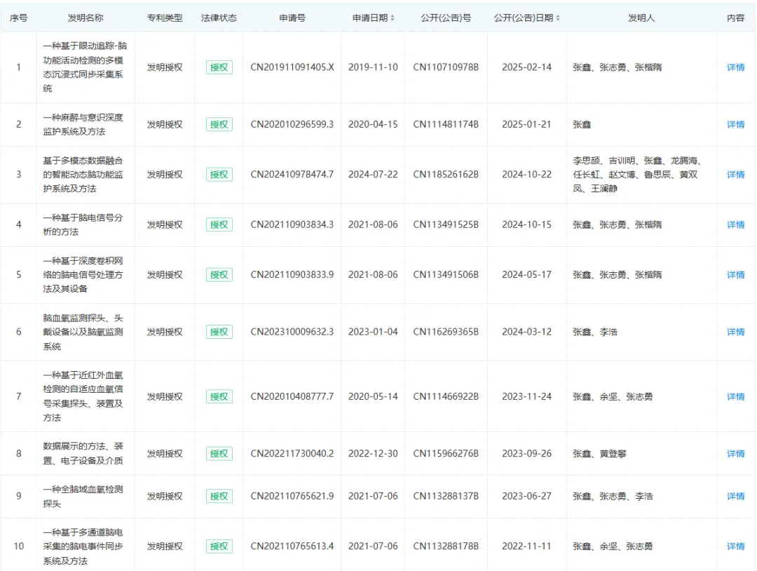 据神经未来查询企查查网站,该公司专利如下表: