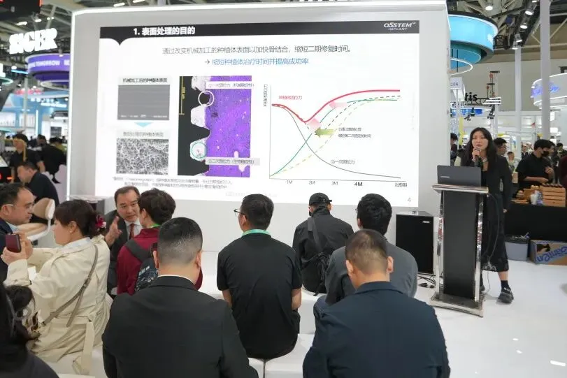 除了技术细节,“如何缩短整体治疗时间、简化患者管理”成为展台现场另一大热议话题。当观众了解到,得益于卓越的骨结合能力,ETIII NH“钙”种植体能够显著缩短修复与负重时间时,许多门诊主任或机构管理者表现出极大兴趣。