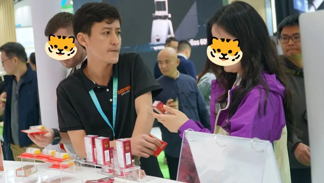在新品展示区,医生手持实物样品,在灯光下仔细端详其表面结构,并与现场的技术专家进行确认:“袁经理刚才讲到的纳米级可吸收的表面涂层,实物就是这样的吗”。 技术专家则借助实物进行更直观的二次讲解。更有临床医生结合自己手头的复杂病例进行现场咨询。“我有一位65岁的老年患者,骨质条件很差,您看这款种植体的早期负载可能性大吗?”一位医生向展台前的临床支持专家询问道。