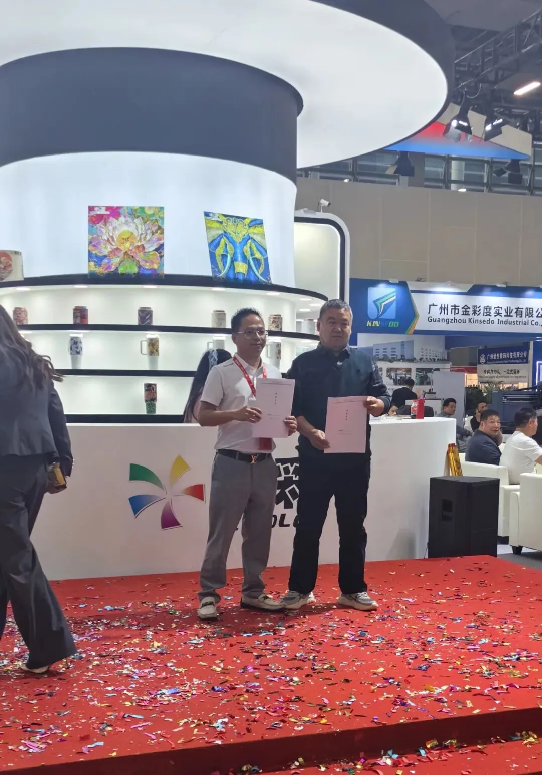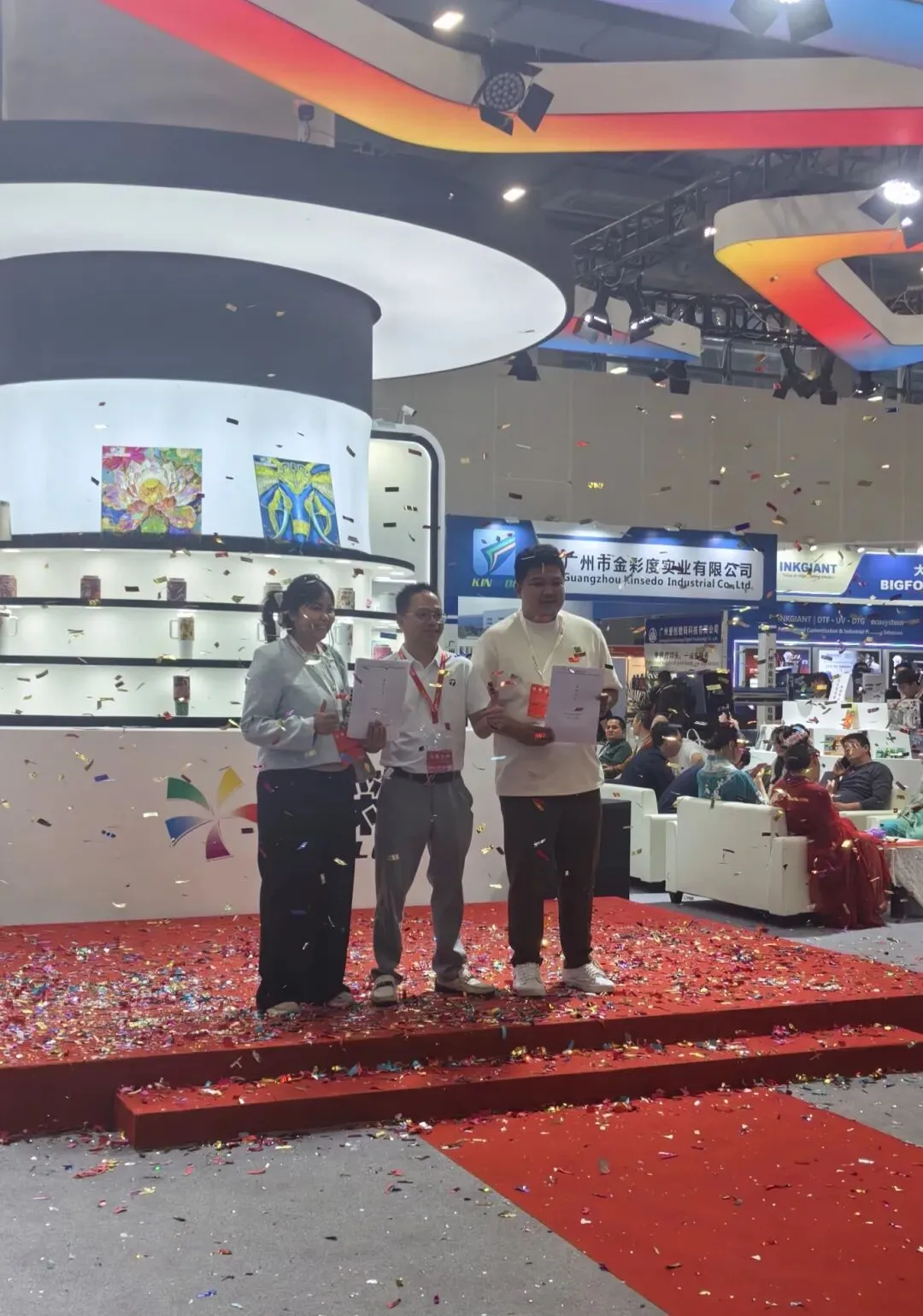 除了机器的轰鸣,中央舞台区同样人气爆棚!精彩节目轮番上演:活力四射的开场鼓乐、科技感十足的灯光秀、融合了打印产品的创意时装走秀……表演不仅吸引了大量观众驻足围观,更在轻松热烈的氛围中,展现了印刷技术与创意文化的无限可能。