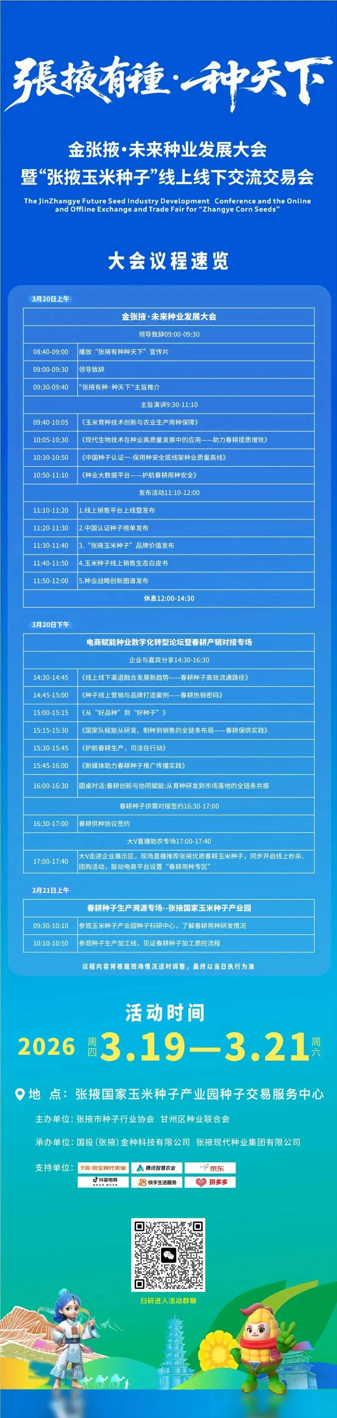 据大会组委会介绍,活动为期两天,大会将邀请国家和省上相关部门负责人及全国种业领域院士专家、知名种子企业代表、电商平台负责人及媒体记者等约300人齐聚金张掖,共襄盛举。大会内容丰富,亮点纷呈,将呈现三大核心板块: