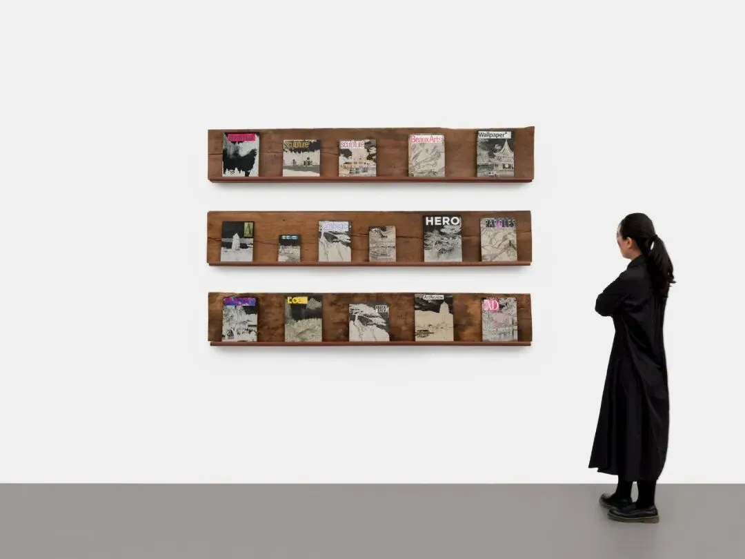 《阴翳志》选取上世纪中国家庭中常见的工艺品“织锦”,将《Wallpaper》、《ArtReview》等国际文化艺术类期刊包裹起来。这些编织出黄山松、雷峰塔、拙政园等中国各地风景名胜的织物,曾作为计划经济时代馈赠远方亲友、表达祝福的重要文化符号,其背面呈现的黑白负片效果与包裹行为一起,形成了视觉解构的双重路径:既将彩色风景转化为阴翳之美的图式,又消解了杂志作为知识载体的功能性,可视作对不同地域文化在传递和转译过程中不可避免的信息耗损和意义偏移的视觉化呈现。
