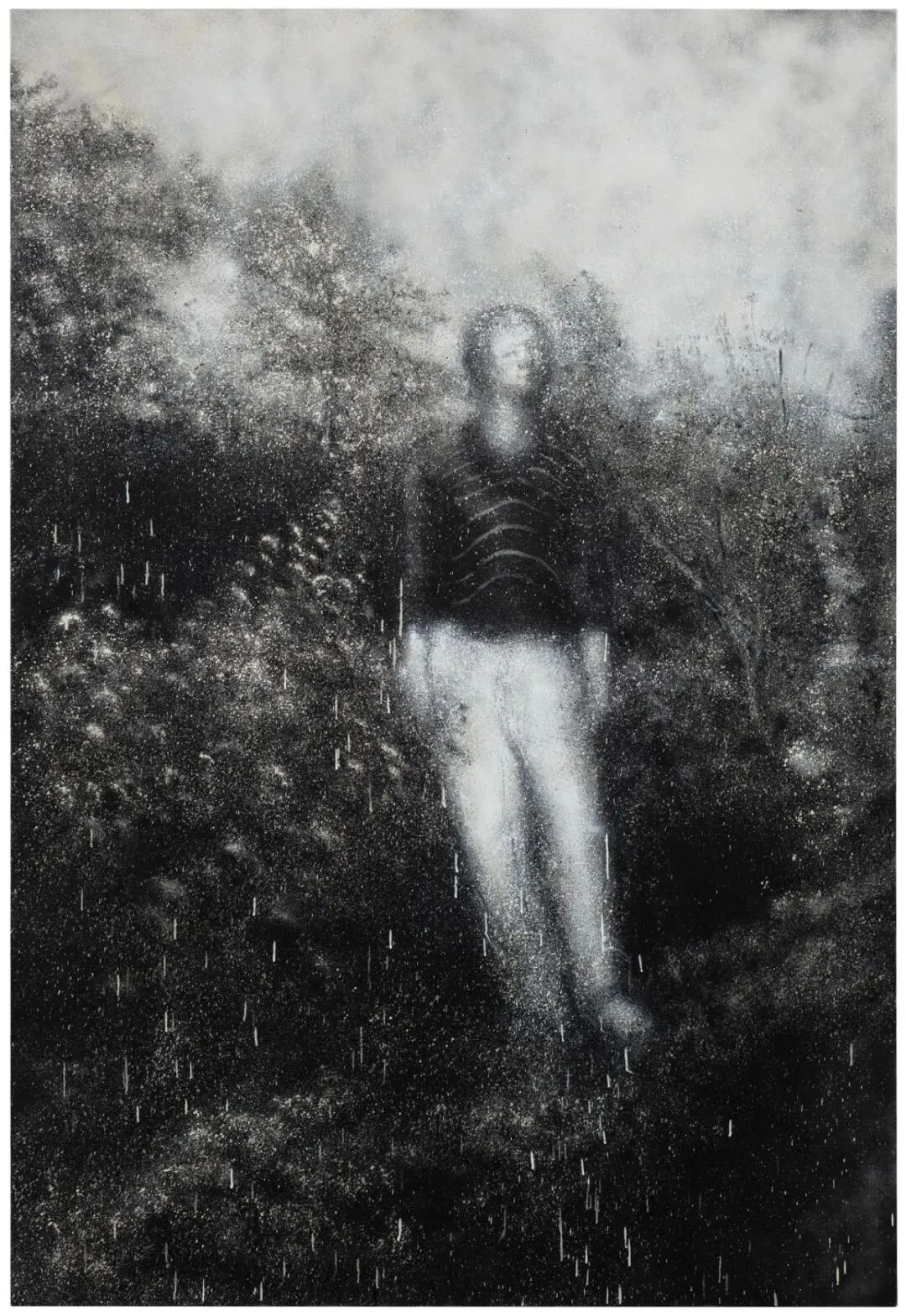 赵银鸥1972年生于沈阳,现居住生活于北京。赵银鸥1988年至1992年就读于中央美术学院附中,1994年至2001年于鲁迅美术学院油画系学习,现任教于北京工业大学艺术设计学院,纪录片《铁⻄区》、《何凤鸣》制片人。 赵银鸥的创作并不依托于线性叙事,她在近乎冷峻的跨维度视角中克制地筛选情感与记忆。时间畸变成物理维度上可提取的任意帧,转化为画布上重复的笔触与喷绘肌理。层层覆盖的画面并非简单的遮蔽,而是通过粉尘的累积捕捉情感的变量,进而推演可能的平行时空。