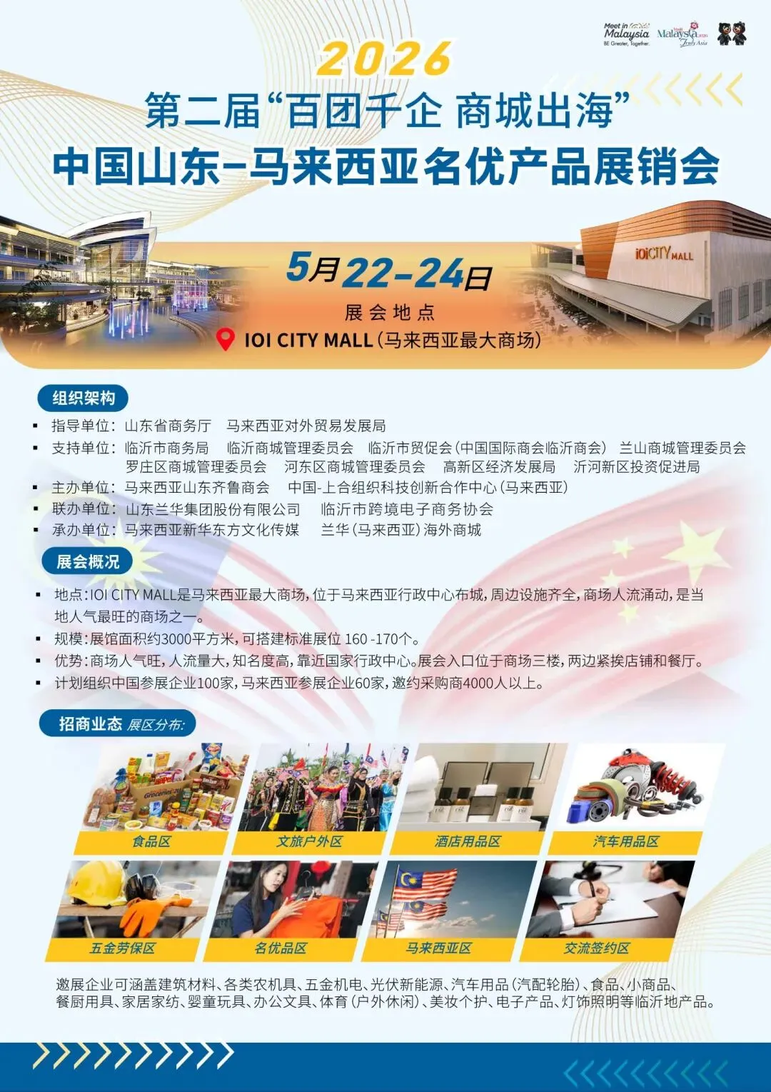 ? 时 间:2026年5月22日—24日? 地 点:马来西亚 IOI CITY MALL(商场三楼展位,紧邻店铺餐厅,直面高客流)