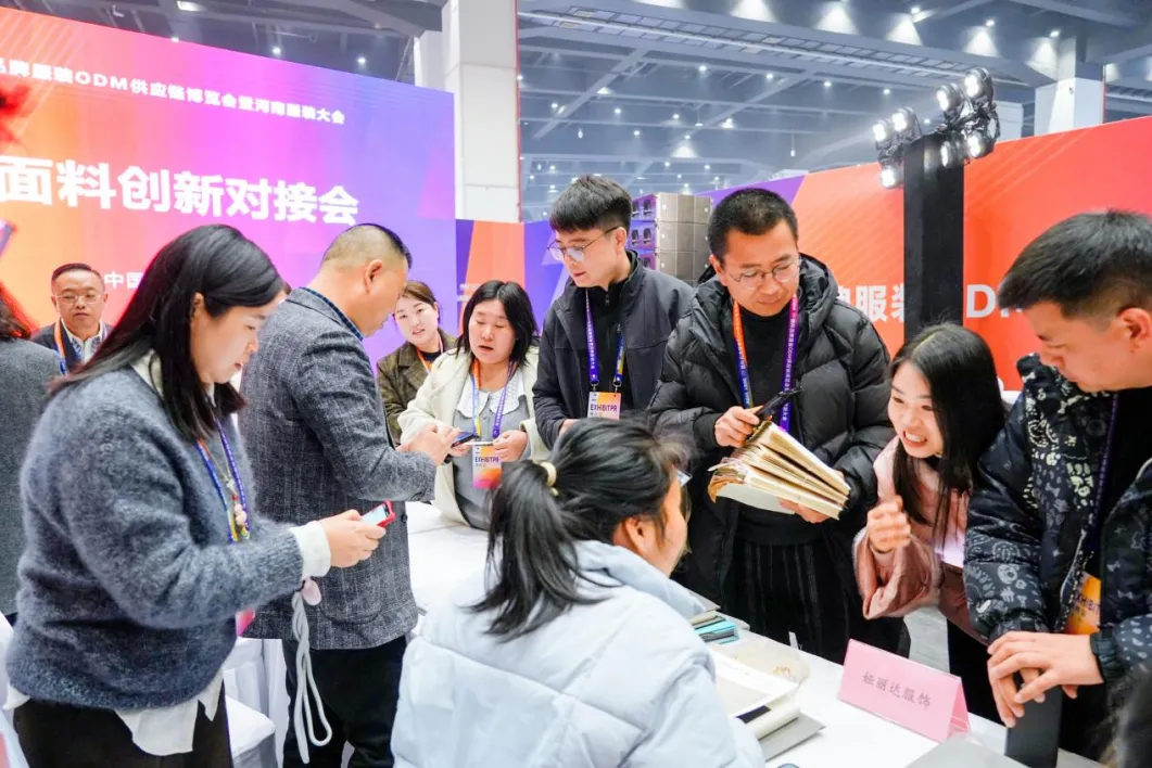 展厅内是资源的全景式呈现,品牌服装与ODM/OEM展区汇聚了来自长三角、珠三角、海西经济区及河南本土的实力工厂,覆盖时装、童装、运动户外、职业装全品类;缝纫智能设备展区,柔性生产线与AI质检技术集中亮相;面辅料展区,绿色环保与国风文创面料创新频出。多区域产业链主体在此打破界限,同台竞技,为接下来的精准对接埋下伏笔。