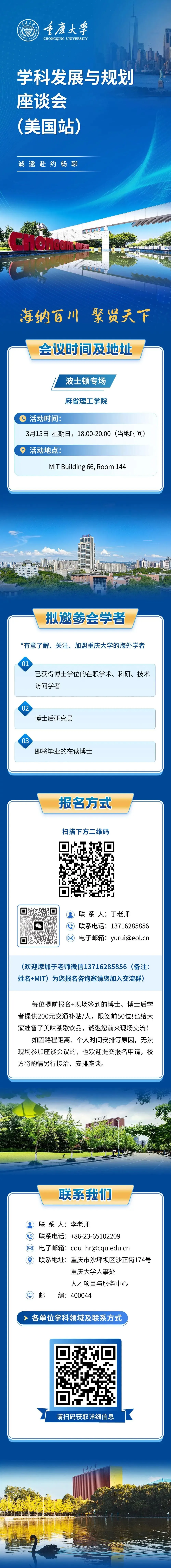 就在3月15日!重庆大学推介会发出邀请,与您相聚波士顿~