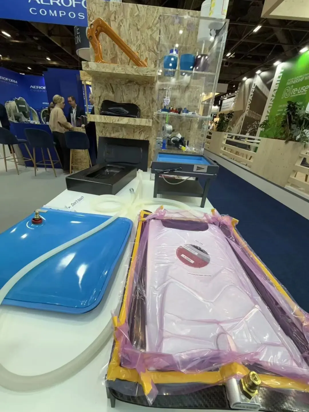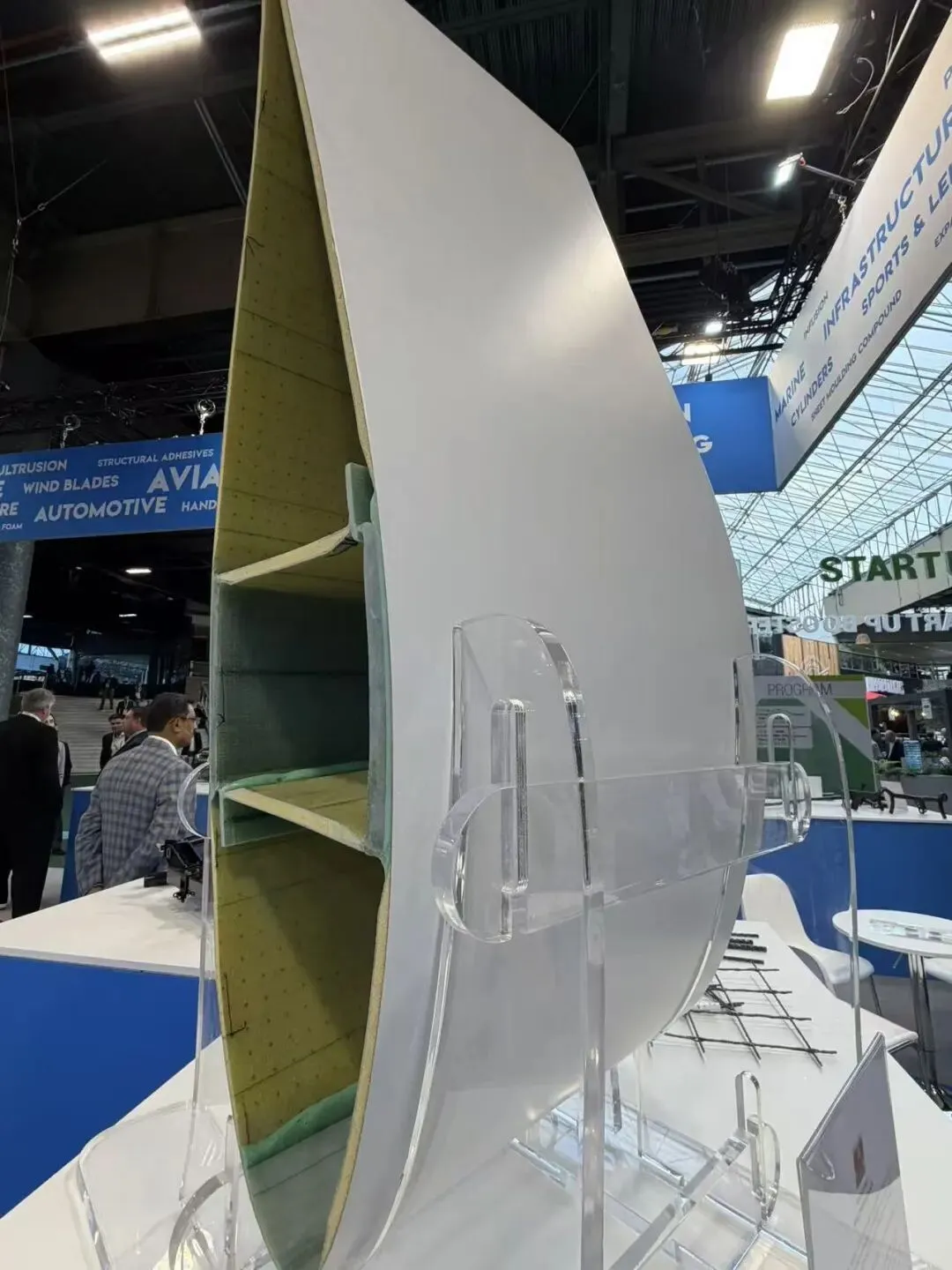 展商云集,展品覆盖航空航天、新能源汽车、风电、绿色建筑等复合材料核心应用领域。中国复合材料工业协会组织晨灿机械等三百余家中国企业集中亮相,重点展示高性能树脂、竹基预浸料等自主创新成果,助力中国复材技术与产品对接全球高端市场,持续深化国际产业合作。