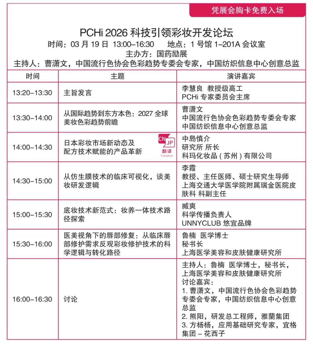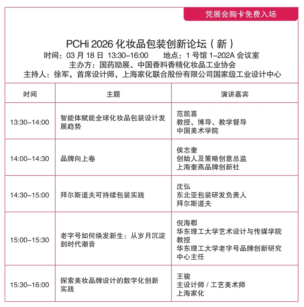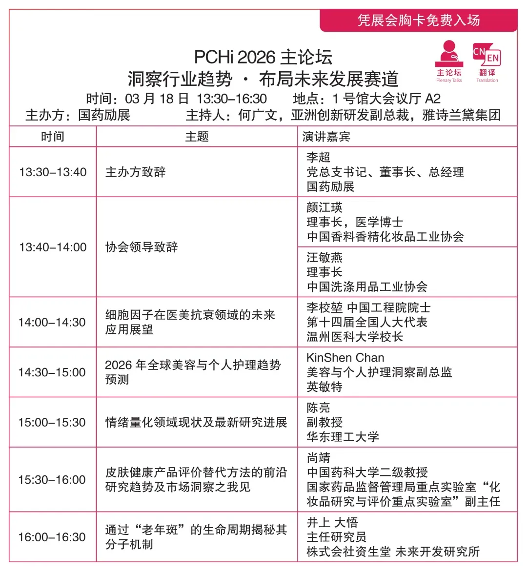 PCHi2026将集结全球化妆品个护领域800+参展企业,100+行业意见领袖,50,000+行业同仁,激发创新灵感,共话发展未来。