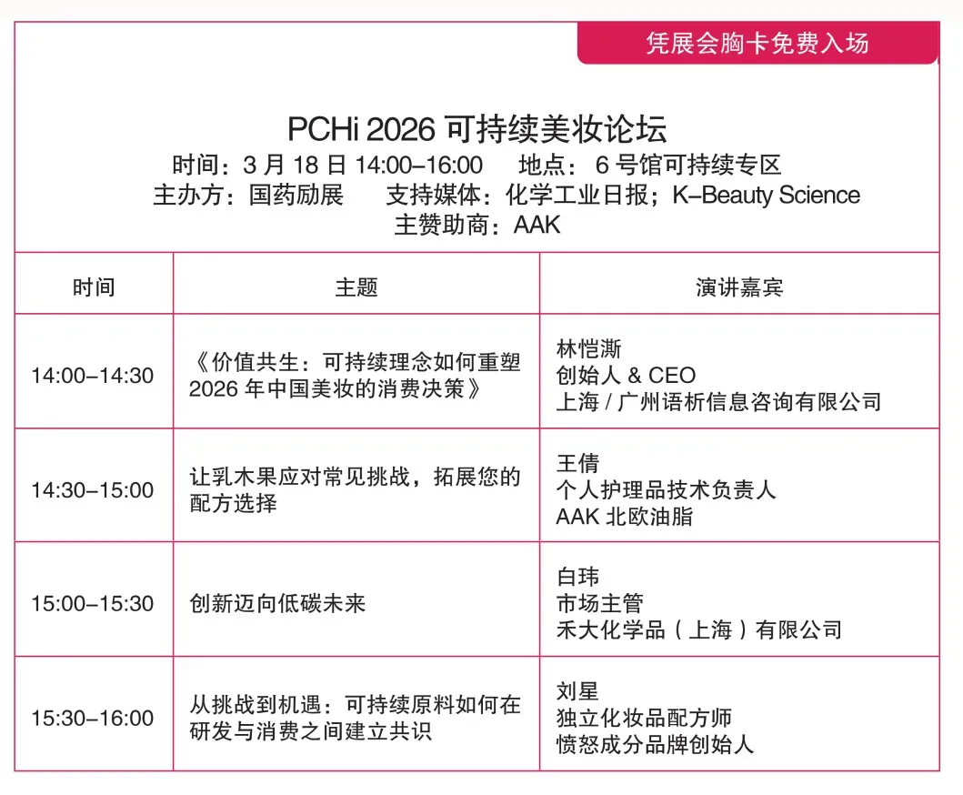 PCHi2026可持续专区将涵盖化妆品原料、成品以及包装材料等多个领域的突破性绿色科技成果。