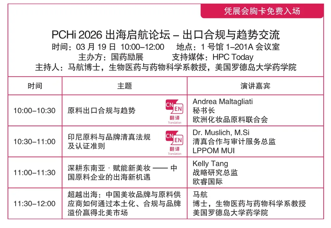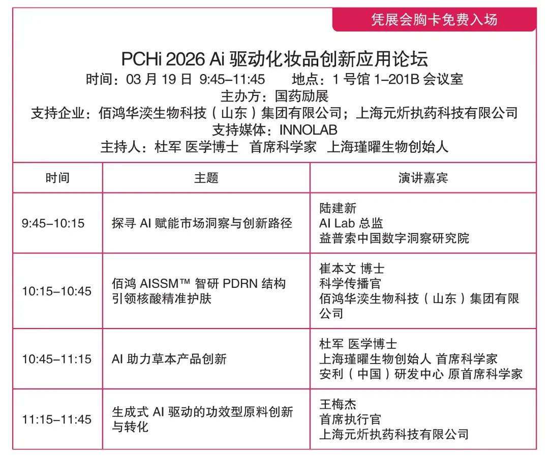 PCHi2026展会现场,将集中呈现新原料创新、配方创新及合规领域的前沿行业动态。