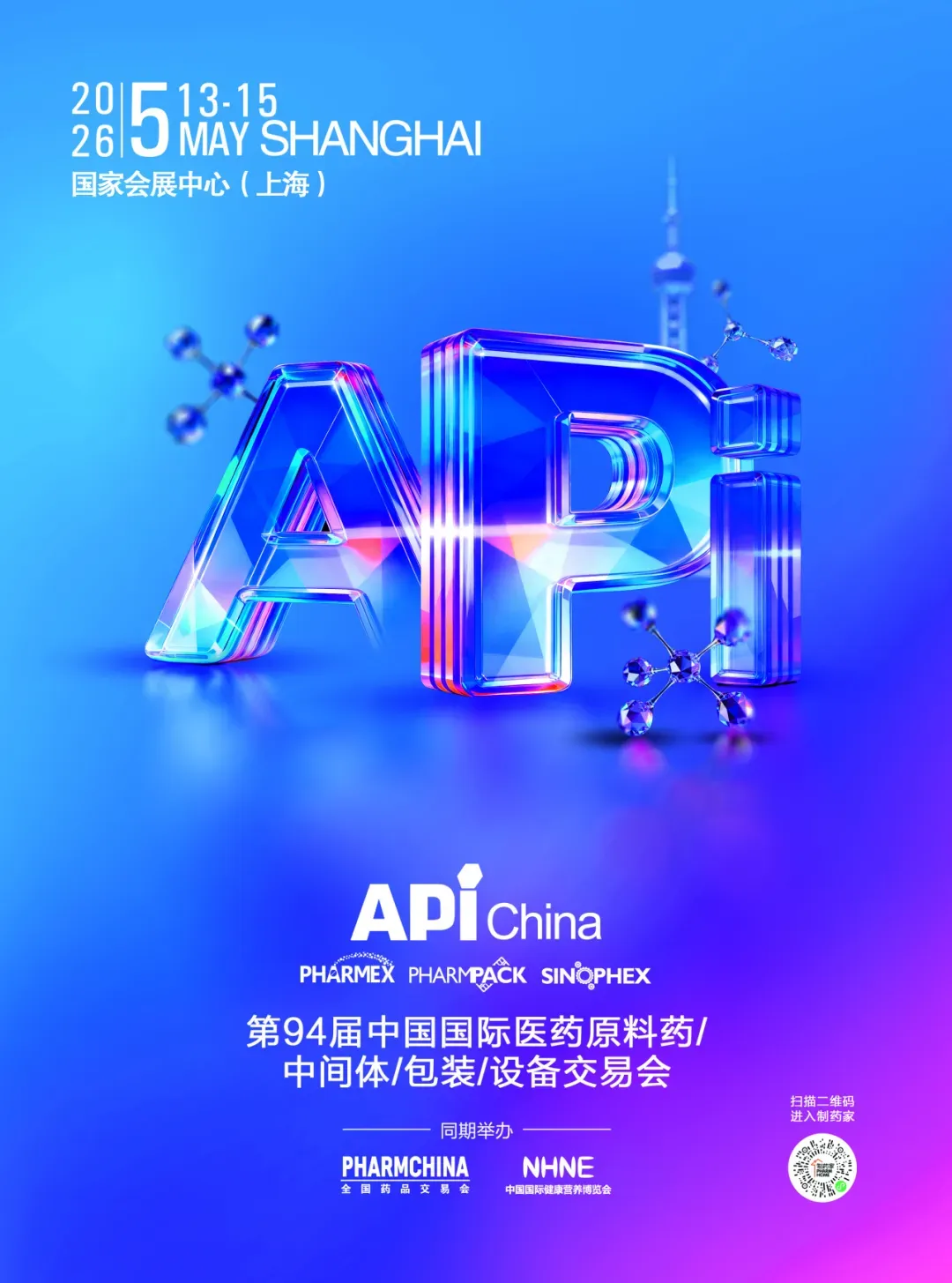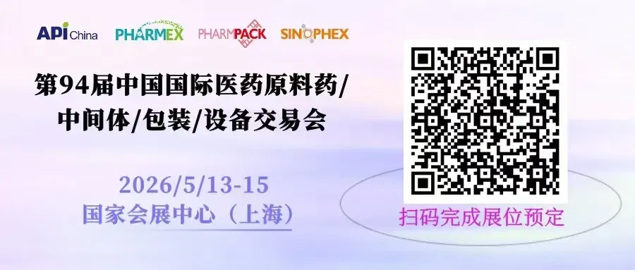 第94届中国国际医药原料药/中间体/包装/设备交易会(API China)将与PHARMCHINA(全国药品交会)、NHNE(中国国际健康营养博览会)于2026年5月13-15日在国家会展中心(上海)同期同地重磅举办。
