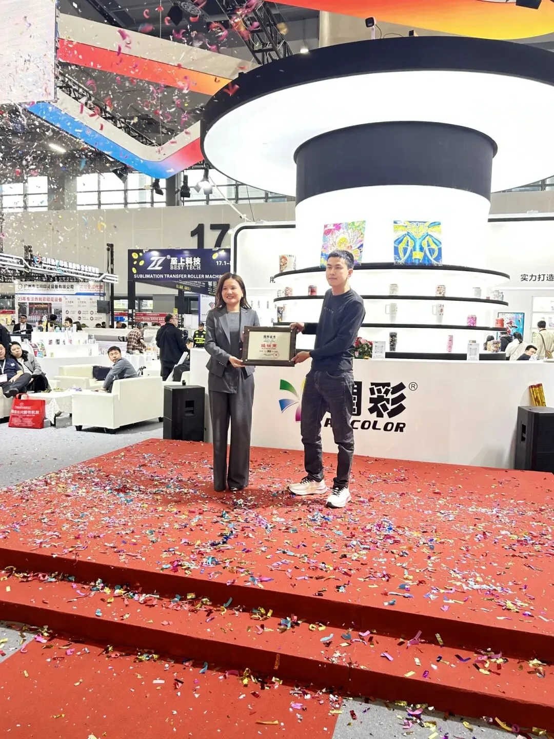 除了机器的轰鸣,中央舞台区同样人气爆棚!精彩节目轮番上演:活力四射的开场鼓乐、科技感十足的灯光秀、融合了打印产品的创意时装走秀……表演不仅吸引了大量观众驻足围观,更在轻松热烈的氛围中,展现了印刷技术与创意文化的无限可能。