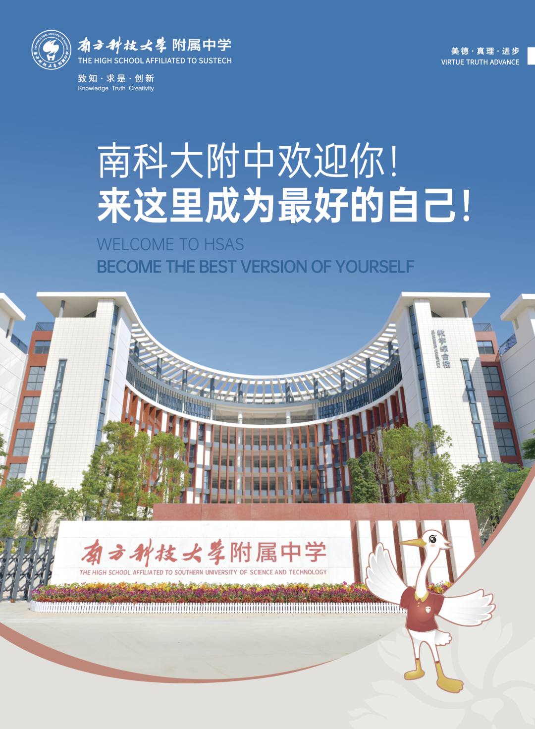 南方科技大学附属中学是一所以科技创新教育为主要特色,兼具人文精神的国际化、信息化的创新型高中。学校在深圳市教育局和南方科技大学的领导下,依托南科大优质教育资源,与南科大进行精准有效的教育衔接,探索"高中-高校贯通式人才培养模式",为未来社会培养德智体美劳全面发展的优秀人才。