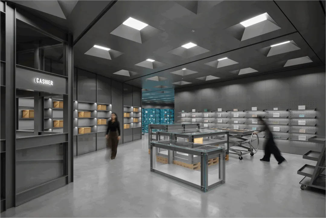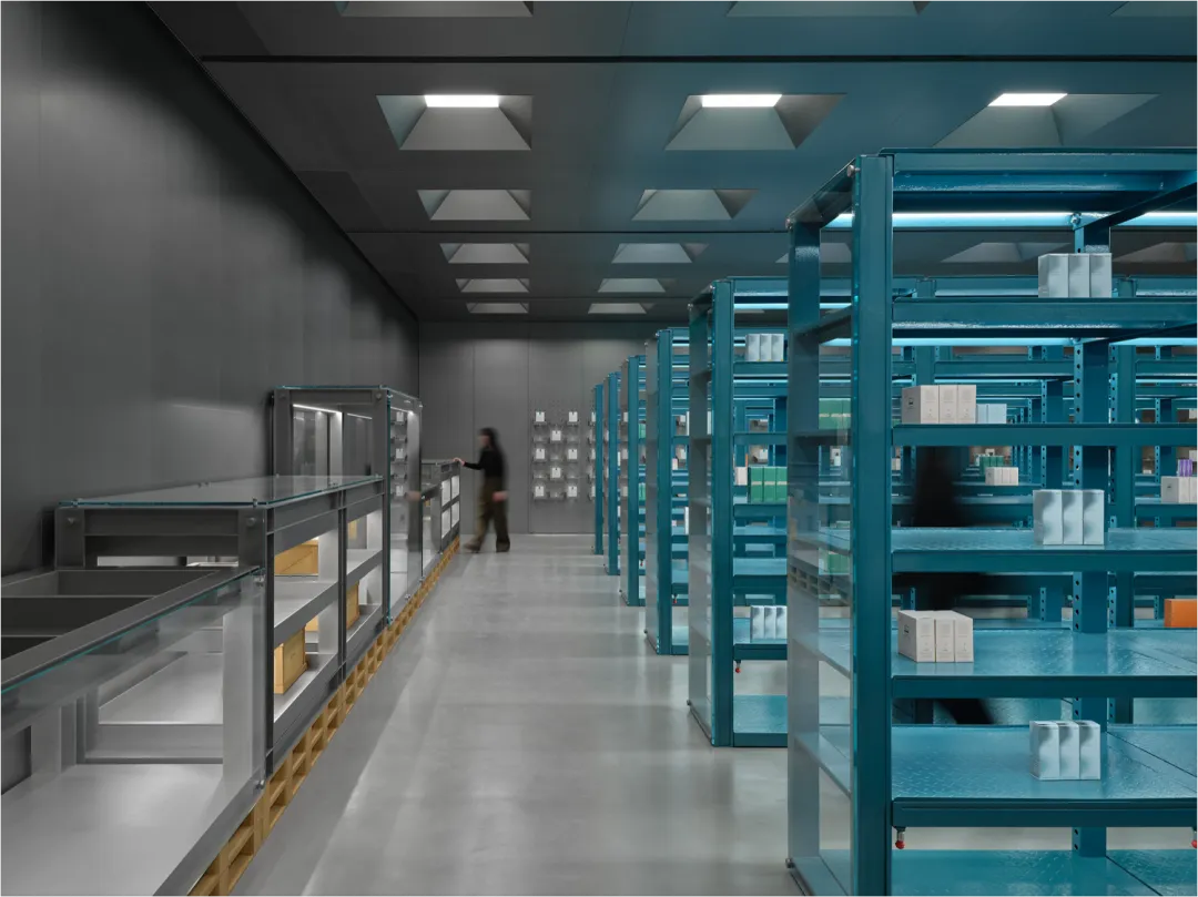 二楼空间更为精致,以档案柜、韩妆及面膜专区为亮点,所有区域均配备集成照明系统,使产品在最佳光线下呈现。空间设计通过模糊仓库与零售档案馆的界限,让顾客在探索产品时,感受到类似艺术展览的体验。
