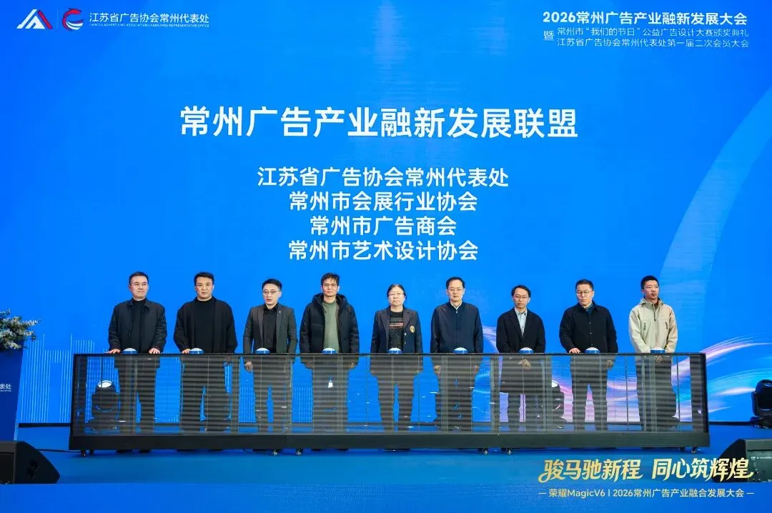 与此同时,由我会与江苏省广告协会常州代表处、常州市广告商会、常州市艺术设计协会联合发起的常州广告产业融新发展联盟正式启动。联盟的成立,打破了单一行业的发展壁垒,搭建起多领域协同创新的优质平台,我会将以此为契机,充分发挥会展业连接产业、市场、资源的桥梁作用,推动会展服务与广告创意深度融合,让会展场景成为广告创意的展示舞台,让广告创意为会展活动赋能增值,实现1+1>2的产业协同效应。