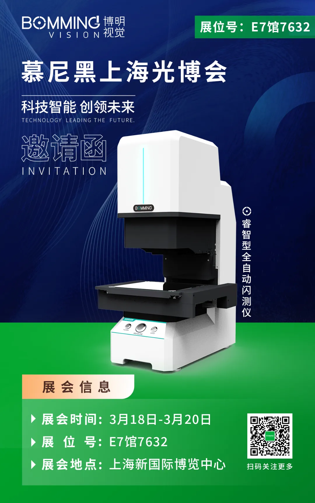 为聚焦新技术、新趋势,积极推动科技成果转化,驱动产业向高端化、全球化跃迁,夯实科技强国战略的基石,共同探索光电产业的未来发展方向,慕尼黑上海光博会将于2026年3月18日至20日在上海新国际博览中心盛大召开。 本届展会以“光启新元·势引未来”为主题,展会形象焕然一新,届时珠海博明将携多款集多种二维尺寸测量工具于一体的全自动闪测仪及3D结构光传感器亮相展位E7馆7632。