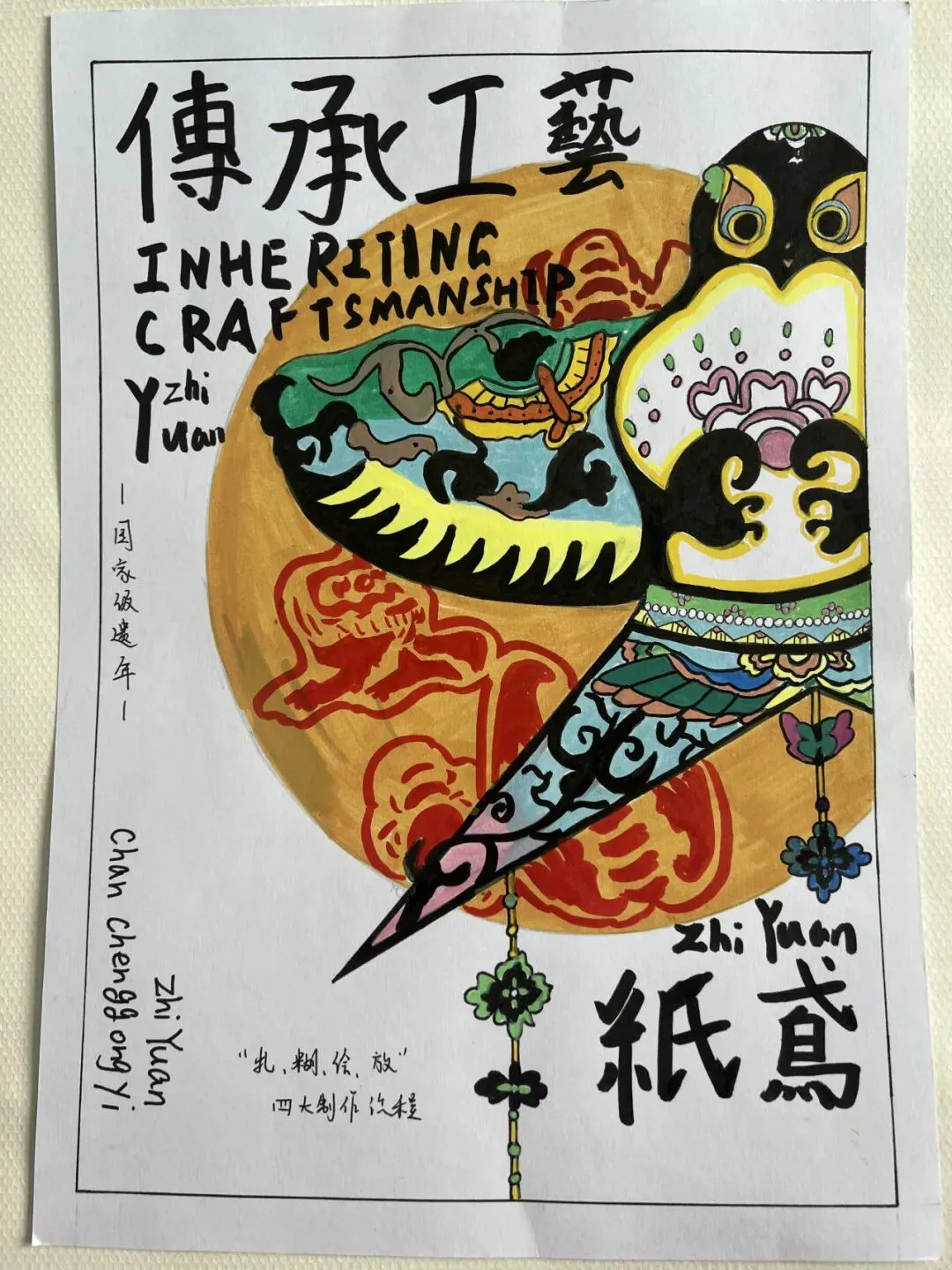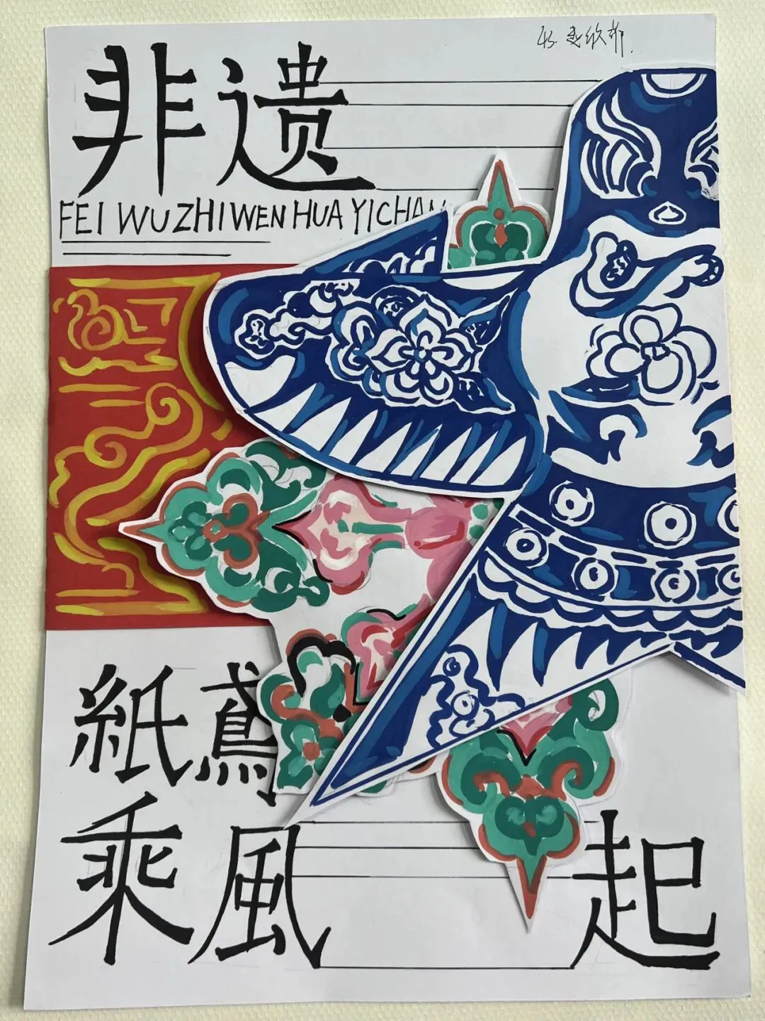 从“传承工艺”到“纸鸢乘风起”,两只形态各异的纸鸢,不仅还原了“扎、糊、绘、放”的制作流程,更藏着少年们对自由与传统的向往。