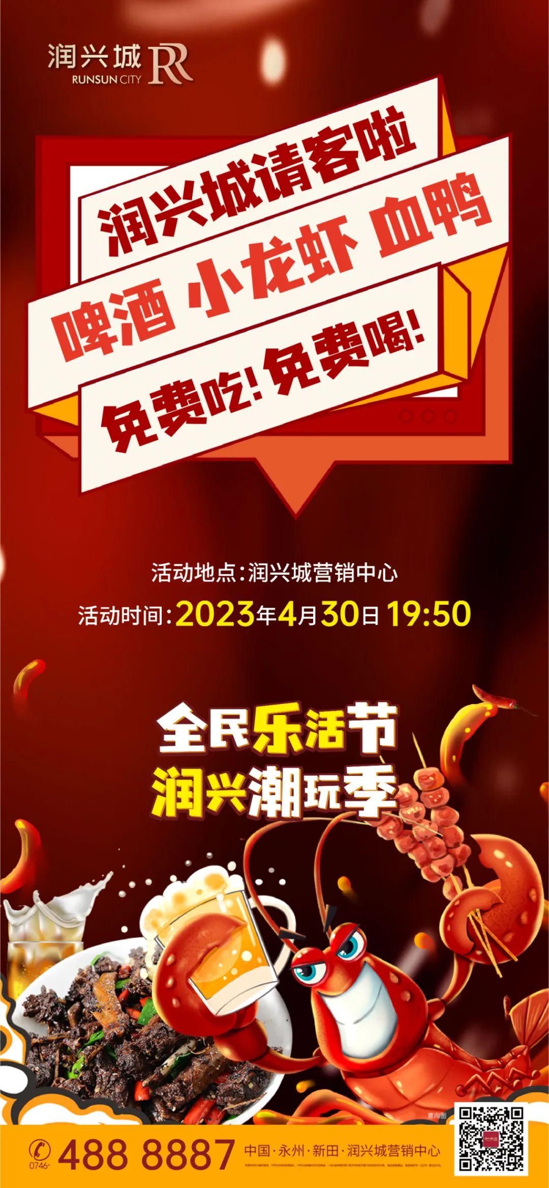 4月30日19:50!免费吃!免费喝!啤酒、小龙虾、血鸭应有尽有……相约润兴城!