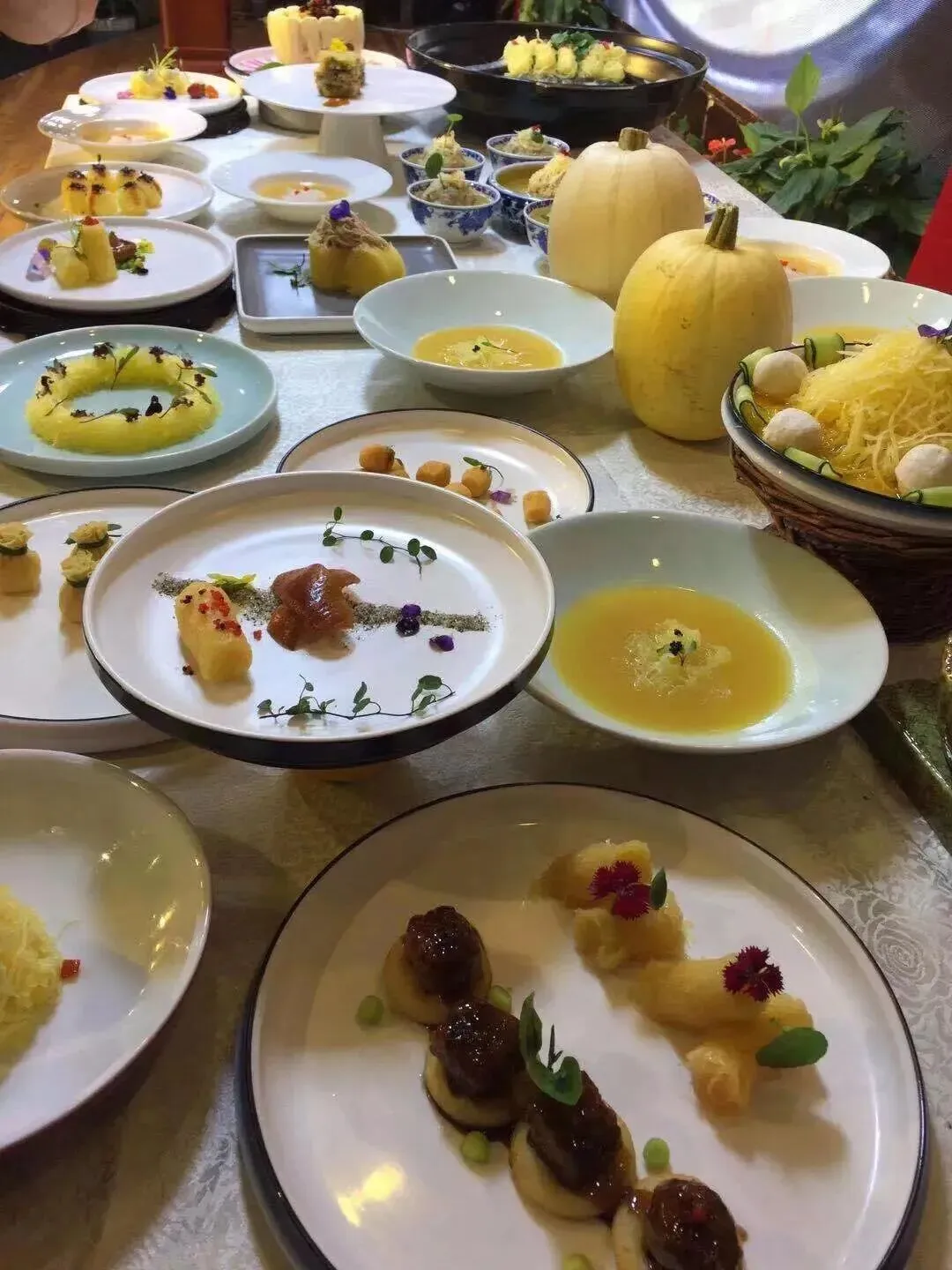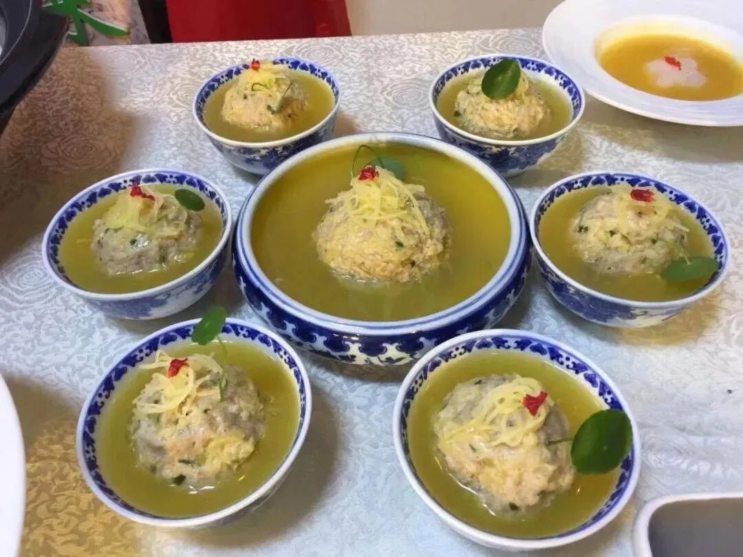 - 热菜里,金丝炖鲍鱼吸饱鲍汁醇厚,金丝鱼头汤奶白解腻,金瓜狮子头把瓜丝混进肉糜,清甜渗进肉香,肥而不腻。