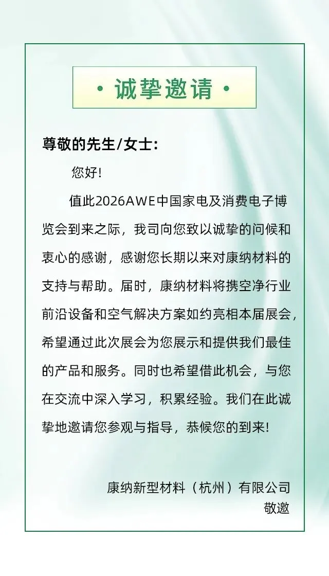 AWE 2026 博览会 |即将开幕,康纳材料诚邀您莅临!