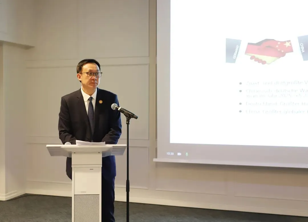黄昳扬在致辞中强调,中德经贸合作正处于新的发展机遇期。他指出,中国已连续8年成为德国最大贸易伙伴,德国也长期稳居中国在欧盟的最大贸易伙伴地位,双边合作基础深厚、前景广阔。2026年默茨总理率高规格代表团访华,推动双方企业达成多项合作共识,93%的在华德企持续看好中国市场发展潜力。