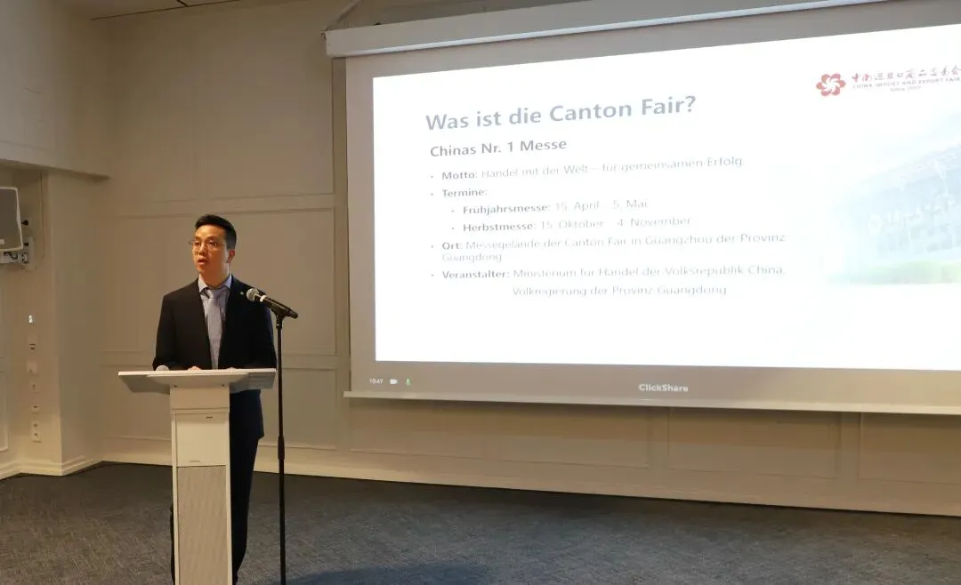 德国当地时间3月10日,中国进出口商品交易会(下文简称“广交会”)推介会在法兰克福顺利举行。本次推介会由中国驻法兰克福总领事馆与中国对外贸易中心联合主办,德国联邦中小企业联合会协办,旨在向德国企业全面推介广交会亮点,深化中德两国经贸合作,为双方企业搭建高效对接平台。