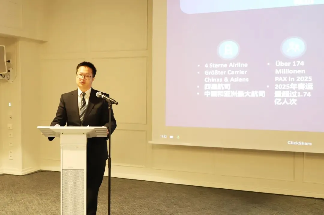 中国南方航空法兰克福营业部客户经理曲星宸介绍,南航以广州为枢纽,航线覆盖中国160多个城市及全球70多个目的地,目前运营法兰克福至广州直飞航班,每周多班稳定执飞。未来计划增加航班频次,并与德国铁路开展联运,为欧洲旅客前往中国、参与广交会提供便捷出行方案。