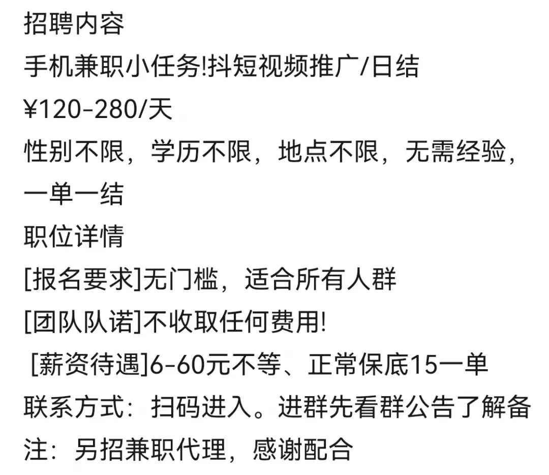 若岗位涉及收费,请勿参与!