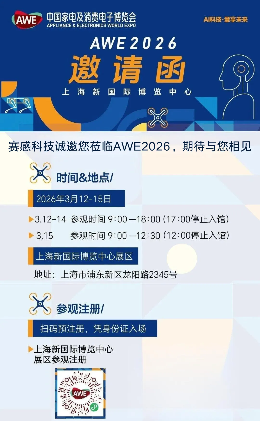 值此 AWE 中国家电及消费电子博览会之际,赛感科技携多款柔性触觉传感方案亮相,诚邀业内伙伴、新老客户莅临展位,交流前沿技术、洽谈合作商机,共探智能感知与消费电子融合新未来!