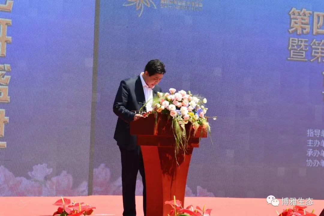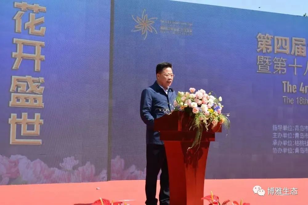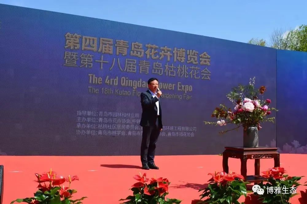 青岛市园林和林业局局长耿以龙宣布第四届青岛花卉博览会暨第十八届青岛枯桃花会开幕。