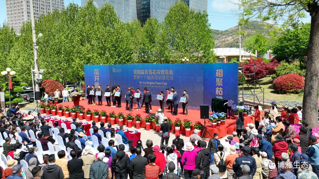 4月29日上午,由青岛市园林和林业局指导,青岛市花卉协会、中韩街道办事处主办,枯桃社区居民委员会、青岛博雅生态环境工程有限公司承办的青岛花卉博览会暨第十八届青岛枯桃花会在枯桃花艺生态园正式开幕。
