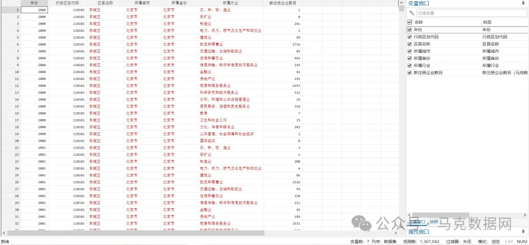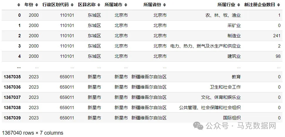 获取中国工商企业注册数据 根据年份、区县、行业,统计新注册企业数目 利用民政部数据,匹配区县的行政区划代码 匹配区县所属城市、所属省份信息