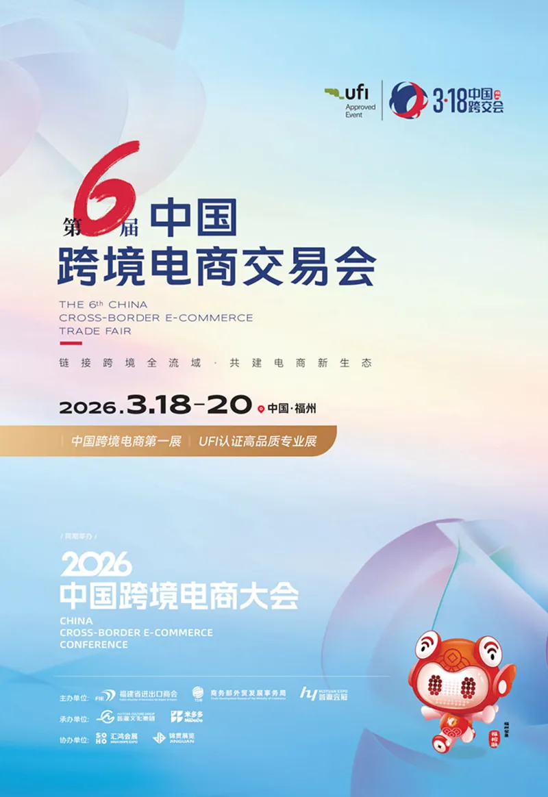 2026福州跨境电商交易会(简称“中国跨交会福州”)3月18-20日在福州海峡国际会展中心举办。凭借组展规模大、办展级别高、展示品类齐、采购邀请广、智库专家多、产业要素全等特点,中国跨交会已成为国内跨境电商行业最具规模、专业性的年度跨境电商展会之一。中国跨交会已连续多年由商务部外贸发展事务局主办,并成为国内第一个获得国际展览业协会(UFI)认证的跨境电商展会,是中国跨境电商公认的晴雨表和⻛向标。凡是过往,皆为序章。第六届中国福州跨境电商交易会正值展会第二个五年计划的开局之时,配套2026中国跨境电商大会,以“更好、更高、更远”的宗旨,力求再次打响全国跨境电商行业每年开春的第一炮。