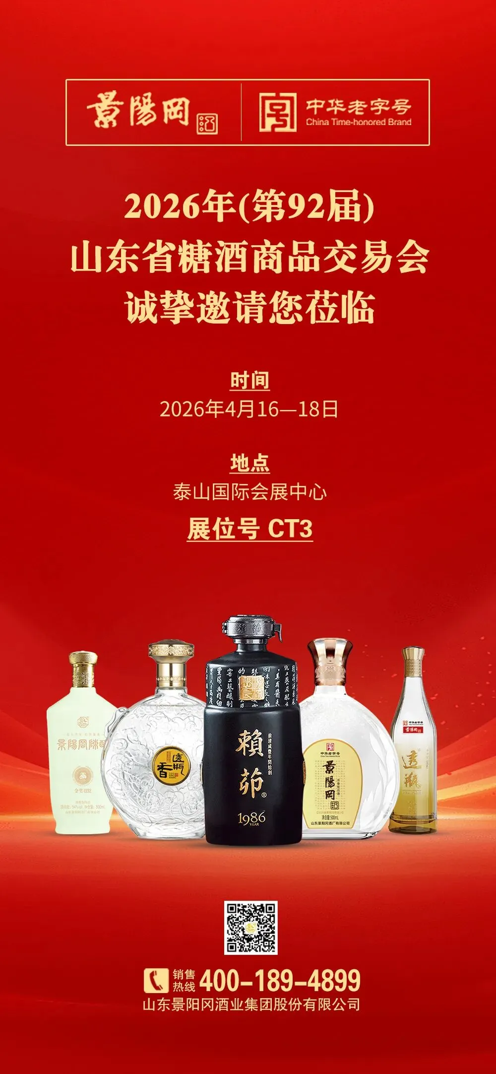 糖酒盛会,共赢未来。2026年4月16—18日,泰山国际会展中心CT3展位,景阳冈酒业集团已备好醇香美酒与合作诚意,诚挚期待各界友人莅临品鉴、洽谈合作,携手共赴鲁酒发展新征程,共创行业繁荣新篇章!