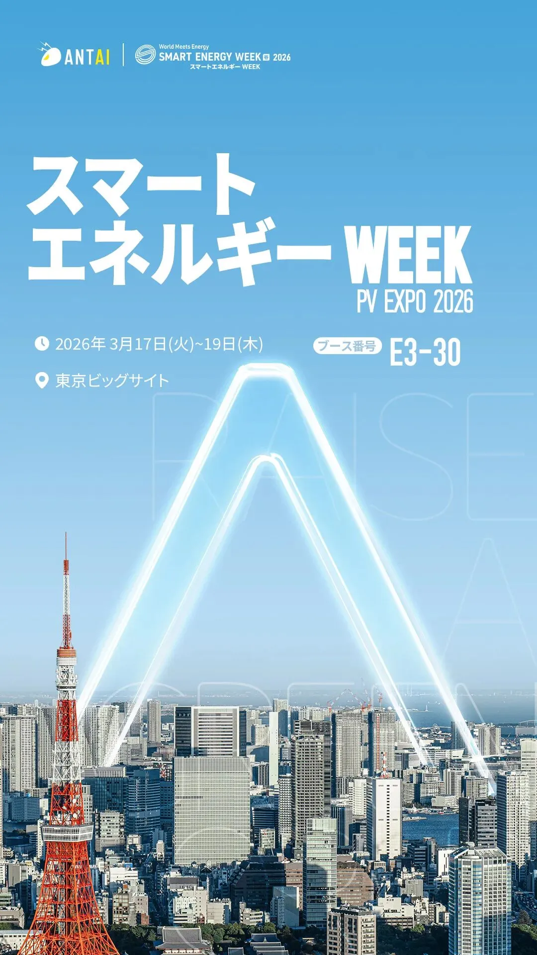 2026年3月17-19日,日本东京国际太阳能光伏展PV EXPO TOKYO 2026将在东京有明国际展览中心(Big Sight)正式启幕。安泰新能源将携明星产品AT-Spark跟踪支架、地面支架、屋顶夹具、以及电站配套产品隔音墙等全场景支架解决方案,亮相本次展会。诚邀各位莅临展位东四展馆E3-30展位,与各行业专家共同探讨太阳能领域前沿技术及创新成果,助力推动世界绿色能源发展及能源转型。
