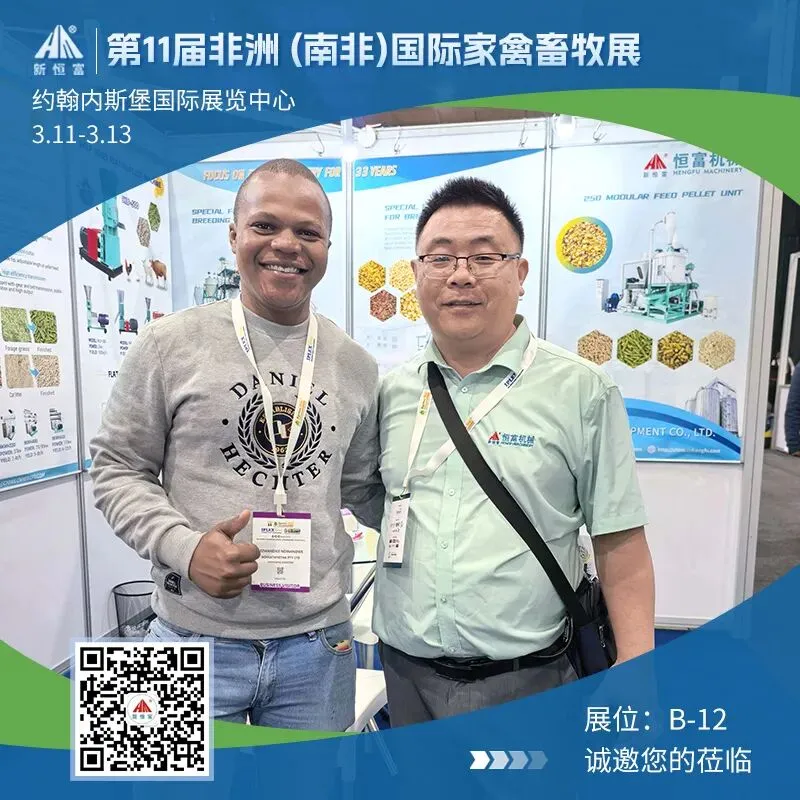 Our staff provided full-process explanations and demonstrations, and carefully answered various questions from customers regarding equipment compatibility, mechanical functions, energy consumption costs, after-sales support, etc. Many local South African farmers and heads of livestock enterprises tried operating the equipment on site, intuitively experiencing the convenience and efficiency of the products. After the experience, they all expressed strong intentions to cooperate, and some customers reached initial cooperation consensus on the spot, laying a solid foundation for Hengfu Machinery to expand into the African market.