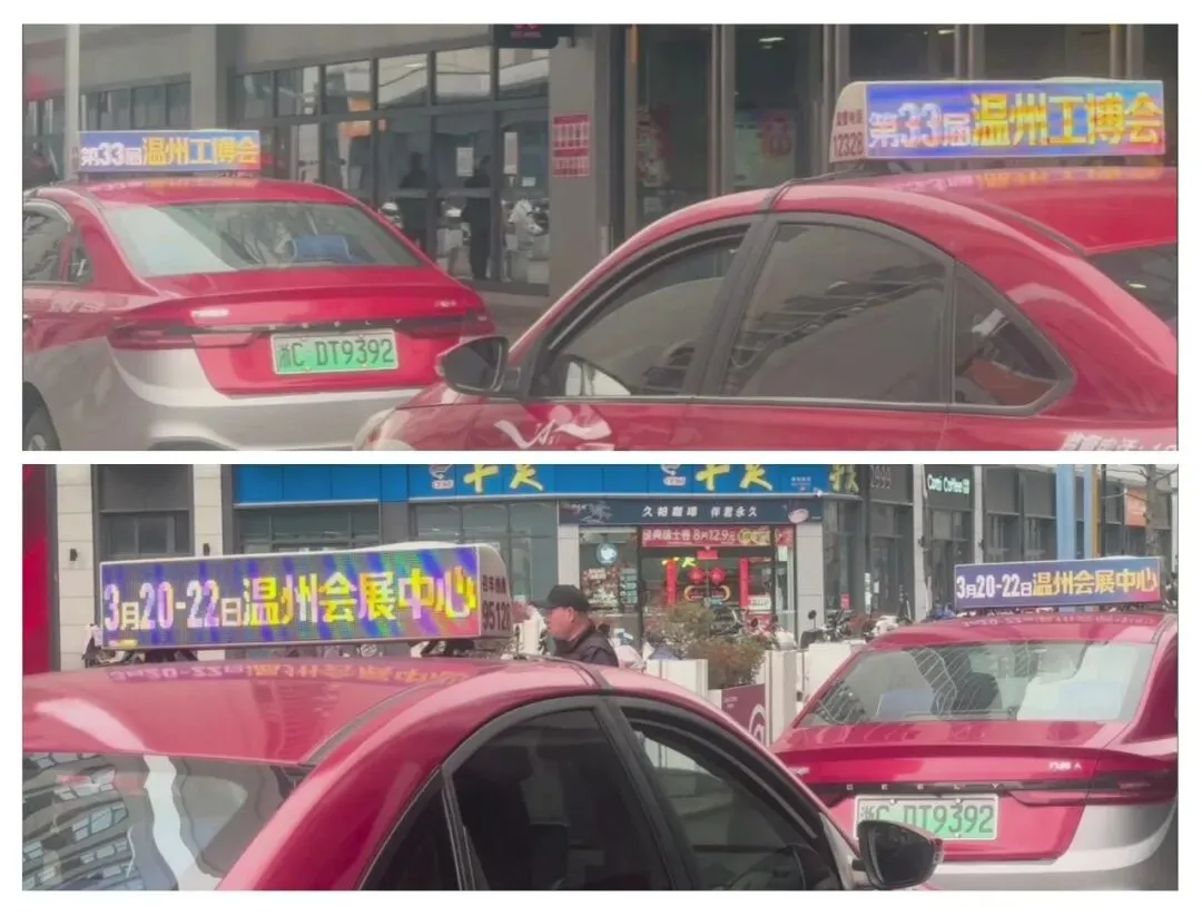 在交通枢纽端,温州火车南站、瑞安火车站的检票口及核心通道巨幅广告已率先上画,迎接八方来客;轨道交通S1线、S2线的机场站、火车南站、乐清及瑞安工业区附近站点,灯箱广告精准锁定往返于产业带与城市之间的专业买家。穿梭于街头巷尾的出租车顶灯、公交车车身,也化身为流动的风景线,将展会信息传递至城市的每一个角落。
