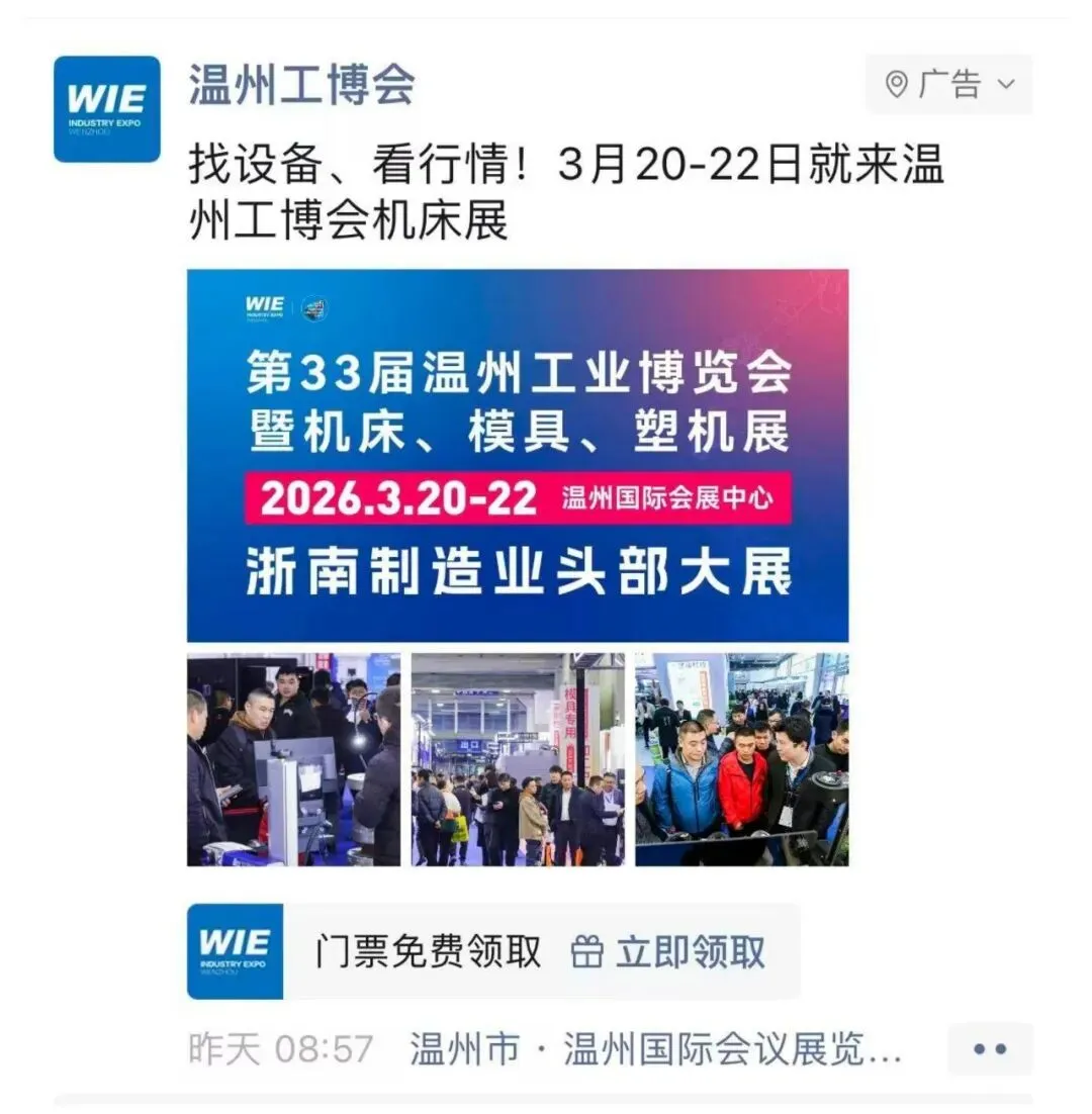 随着2026年春风渐暖,备受制造业瞩目的行业盛事——2026第33届中国(温州)国际工业博览会暨温州3月国际机床、模具、塑机展(简称:温州工博会)即将于3月20日至22日在温州国际会展中心隆重举行。目前,展会各项筹备工作已进入冲刺阶段,一场覆盖温州全城及周边城市工业企业集中区域的广告宣传攻势已全面铺开,将“温州工博会”的品牌热度提前引爆,向广大制造业企业发出“来温州,寻商机”的诚挚邀请。