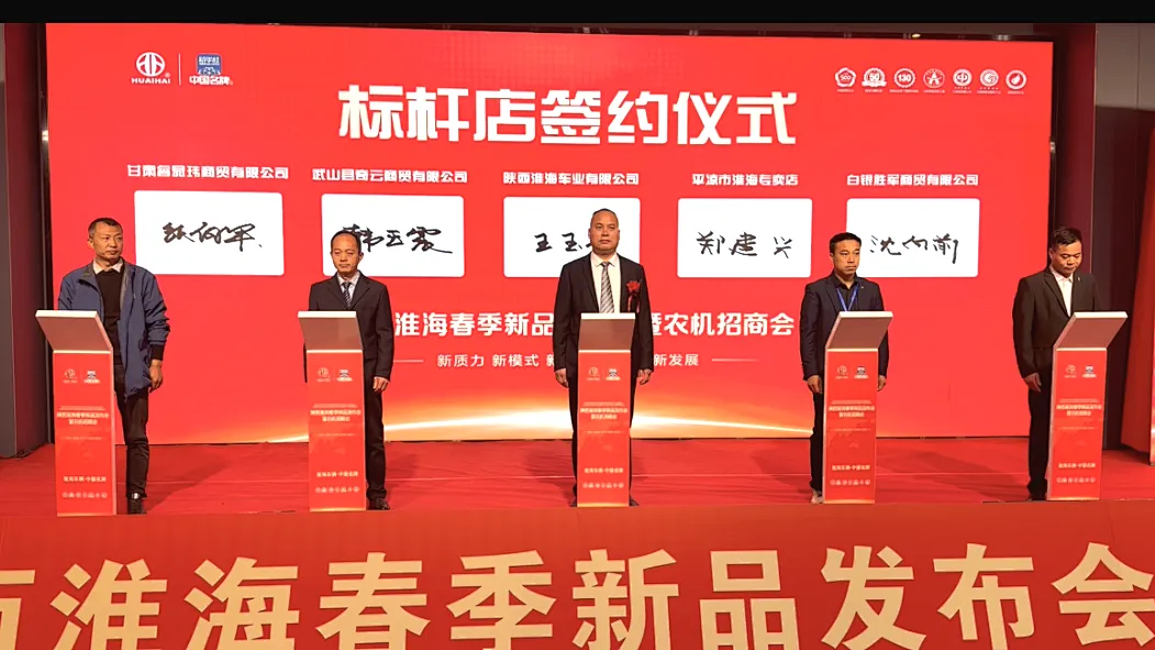本次淮海春季新品发布会暨农机招商会圆满落幕,标杆店成功签约、9055 台商用车及2961台农机产品订单的亮眼成绩,印证了市场对淮海的高度认可与经销商伙伴的坚定携手。大会明晰行业趋势、释放重磅政策、落地标杆渠道,为合作发展筑牢根基。未来,淮海将持续紧跟国家兴农战略,以全品类产品、全流程扶持赋能渠道,与全体合作伙伴同心聚力,以标杆店为引领深耕市场,紧抓农机行业黄金机遇,共拓千亿蓝海市场,在农业现代化与乡村振兴的浪潮中,携手共创更辉煌的发展未来。
