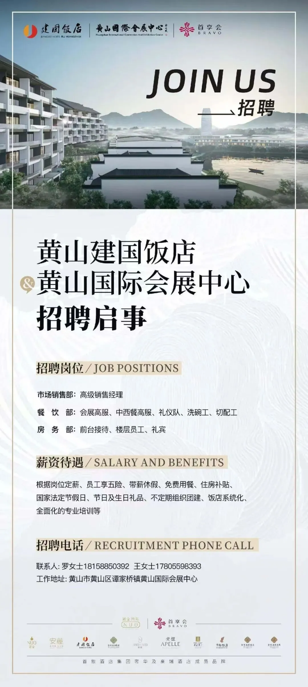 黄山建国饭店&黄山国际会展中心招聘启事