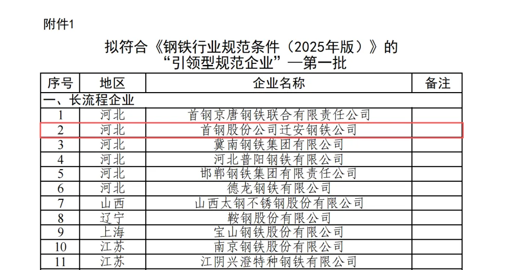 近日,工业和信息化部正式公示《钢铁行业规范条件(2025 年版)》企业(第一批)名单,我市钢铁企业凭借过硬综合实力斩获佳绩:1家企业入选“引领型规范企业”,5家企业入选“规范企业”,为全市钢铁产业高质量发展再添硬核名片!