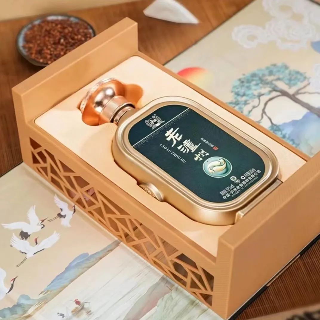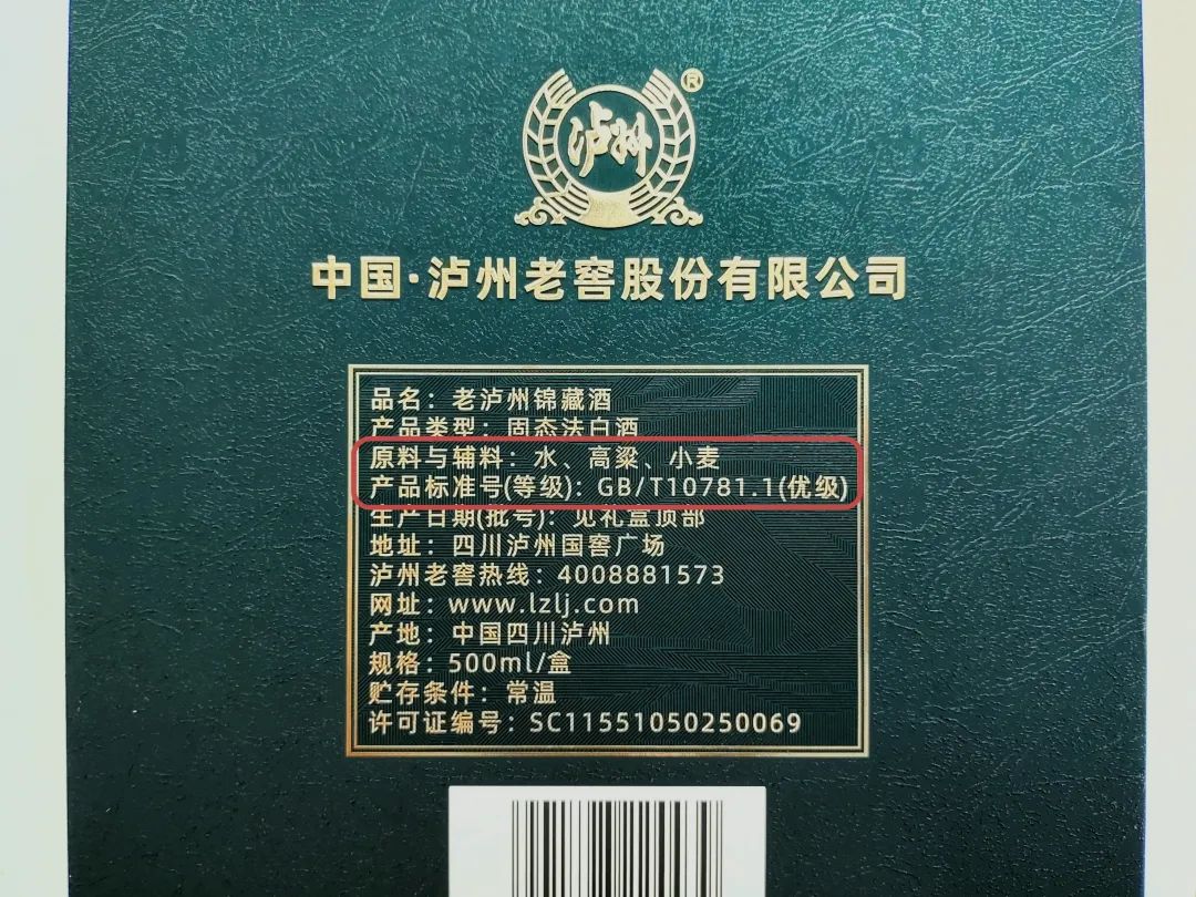 2、四川窖池固态发酵,国家非遗技艺酿造,活态浓香,回味悠长。3、一酒一码,防伪鉴别,500ml/瓶,赠配套手提袋。而是正儿八经的正统出身,泸州老窖股份有限公司出品。官方授权保障,我们团队经过严格审核、品尝,保证资质齐全,酒质优等,要让大家喝的放心。老泸州锦藏是四川窖池固态发酵,水、高粱、小麦恰到好处的配比。酿就集“醇厚、浓郁、爽净、幽雅”为一体的浓香型白酒典型风格。酒质特点是酒香味中窖陈味,粮香味、糟曲味等多种复合性香气为主香、口感清冽干爽、饮后余香悠长。这个度数酒中的酒精分子游离较少,对人体刺激小,好喝不上头。倒入杯中,溅起的酒花清盈丰满,酒体清澈透明,简直就像在欣赏一件艺术品,用两个字形容就是:诱人。忍不住送到嘴边轻呷一口,芳香浓郁,一点也不觉得辣口。清冽的酒瞬间就像棉花糖一样化开,入喉顺畅自然、回甘略带清甜、回味劲爽绵长,诸味相容和谐适中,妙不可言。在整个酿酒过程中,从糖化到发酵到蒸馏到陈酿到勾调过程中几乎是滴水不用的(当然,在蒸煮粮食的过程中肯定是要用到水的)其他固液法酿造的非纯粮食白酒,配料表含有食用酒精或食用香料等字样,不仅口感差,还有一定危害!锦藏酒的执行标准一栏标注GB/T10781.1(优级)四川泸州出产,原料除了高粱、小麦和水再无其他添加,纯粮酿造,浓香正宗。打开第一页是山水渔夫、祥云游鹤,另一面则是一副日照青松的绘画,满满的古韵气息。中间的就是酒了,500ml/瓶,金色的主色调华丽但不庸俗。